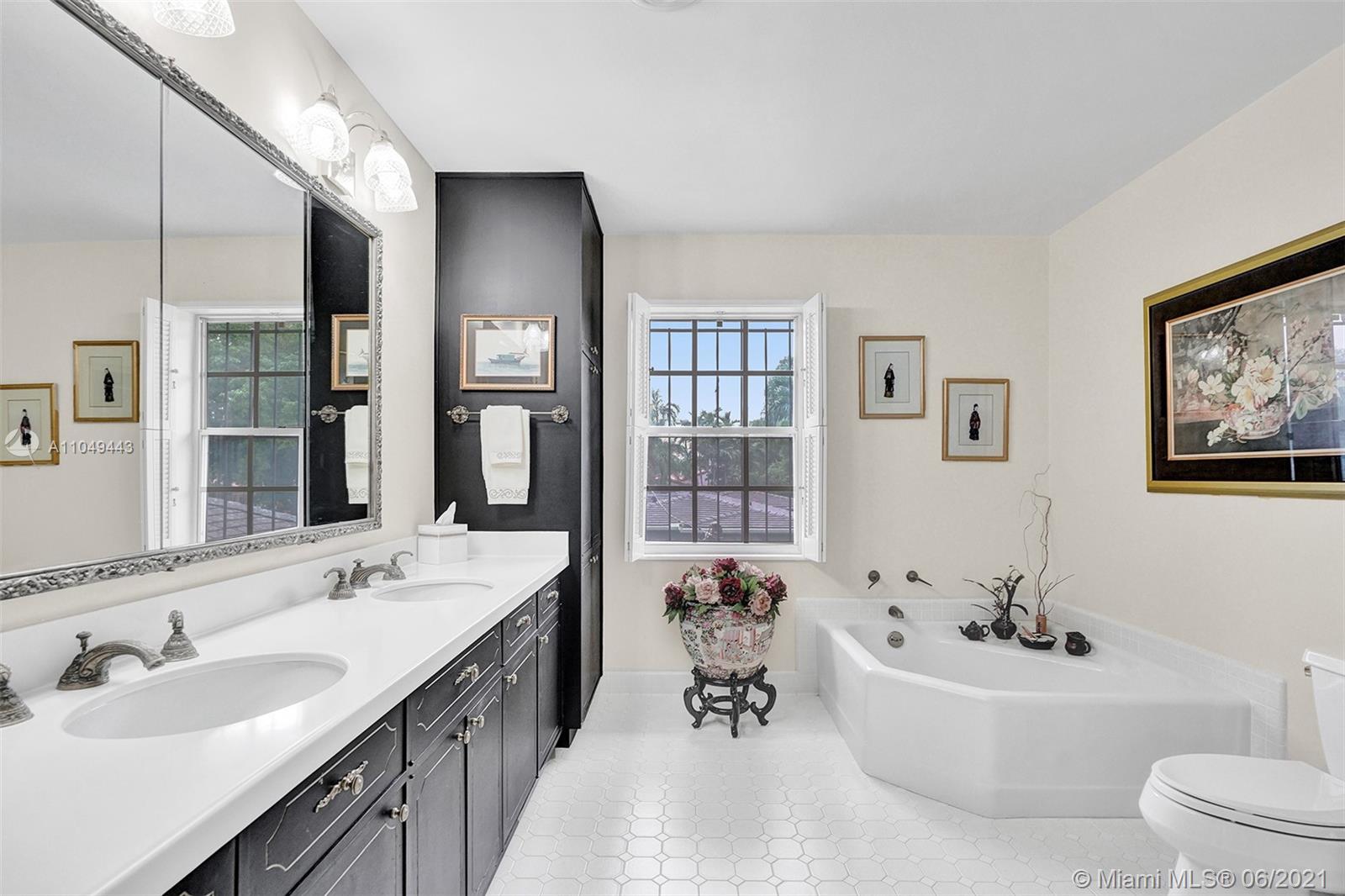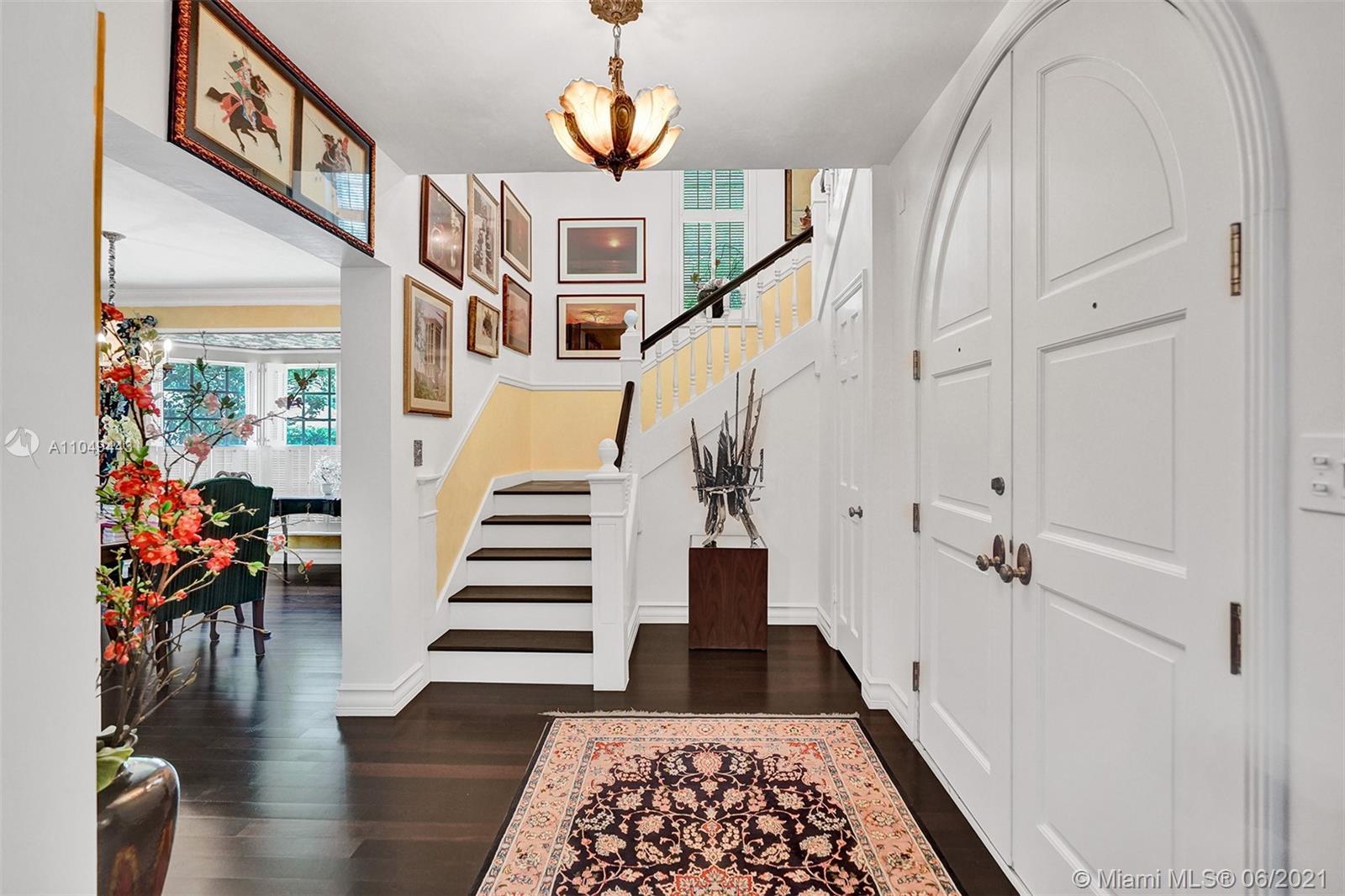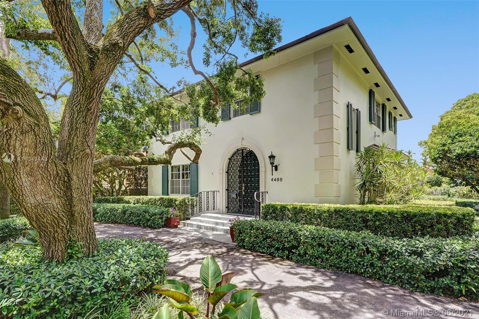 Chateau in Coral Gables perfectly sited on a private lush corner lot shaded by mature live oaks and surrounded by floral formal gardens. Double wrought iron gated entrance leads to the spectacular foyer with a majestic inlaid wenge wood staircase & traditional wainscoting. Spacious formal living room with a rococo marble fireplace and formal dining room covered with rich dark wenge wood flooring. Beautiful kitchen with a breakfast nook & powder room & 2 car garage on the first floor. Second story features 2 appointed master bedrooms with en-suite master baths, immense walk-in closets and a private office. Centrally located in the heart of Coral Gables within walking distance to Riviera Golf Course, Biltmore Hotel, Venetian Pool, and minutes to the University of Miami and top shcools.