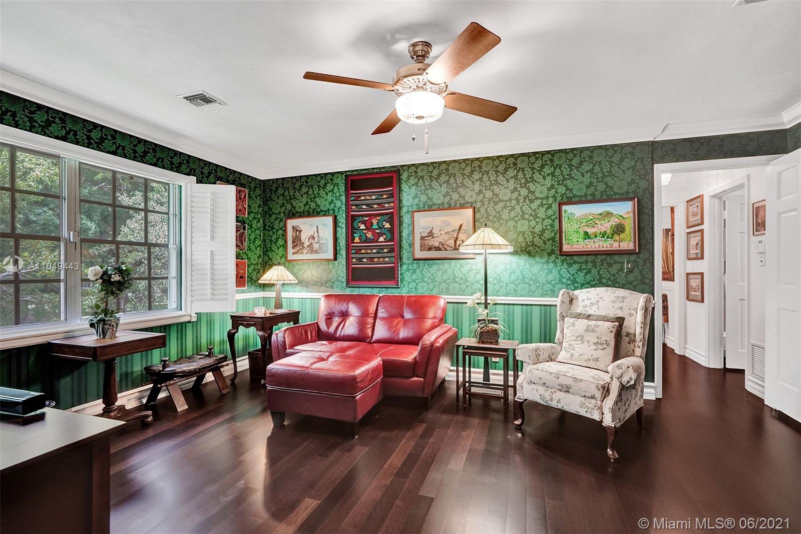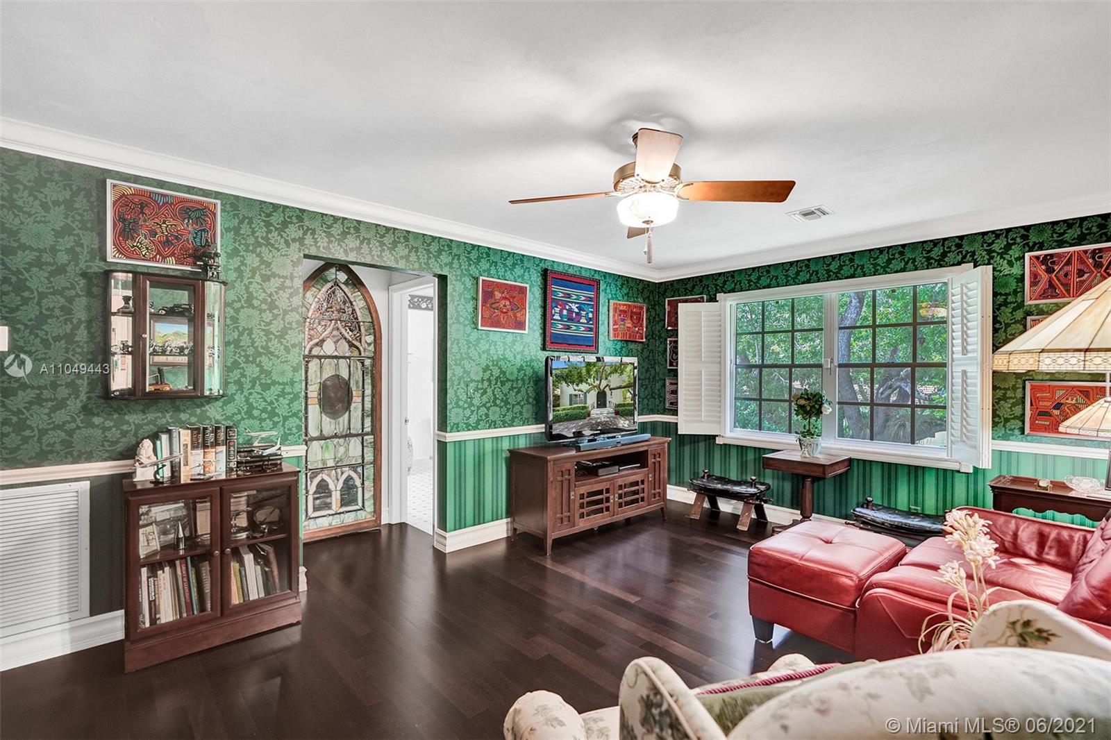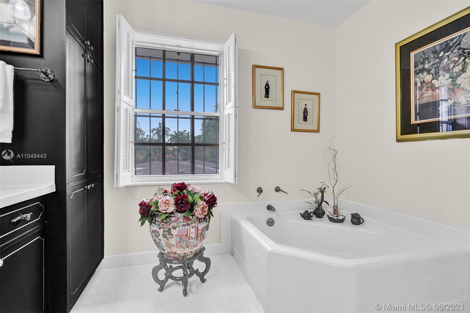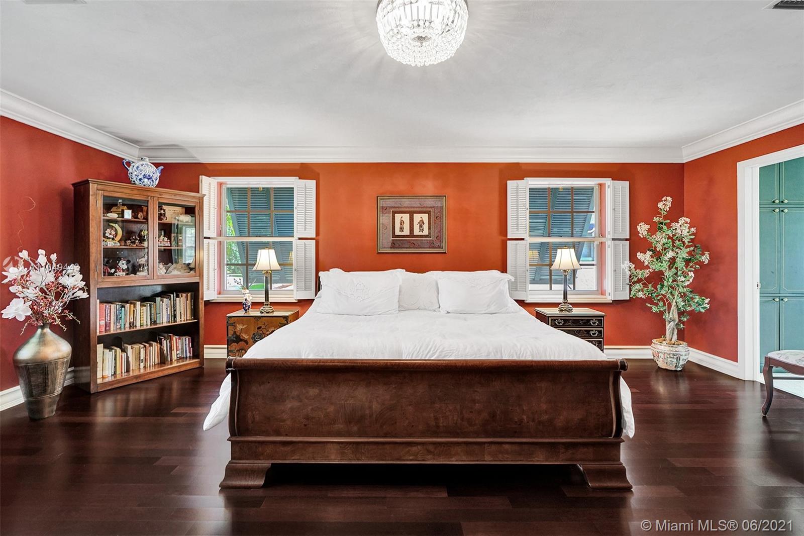 Chateau in Coral Gables perfectly sited on a private lush corner lot shaded by mature live oaks and surrounded by floral formal gardens. Double wrought iron gated entrance leads to the spectacular foyer with a majestic inlaid wenge wood staircase & traditional wainscoting. Spacious formal living room with a rococo marble fireplace and formal dining room covered with rich dark wenge wood flooring. Beautiful kitchen with a breakfast nook & powder room & 2 car garage on the first floor. Second story features 2 appointed master bedrooms with en-suite master baths, immense walk-in closets and a private office. Centrally located in the heart of Coral Gables within walking distance to Riviera Golf Course, Biltmore Hotel, Venetian Pool, and minutes to the University of Miami and top shcools.