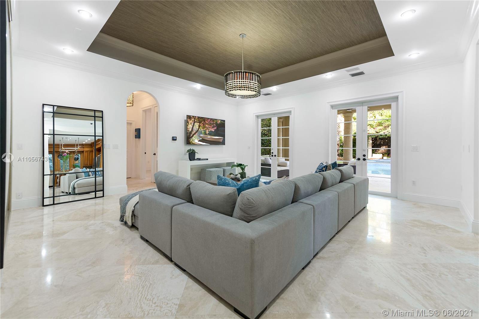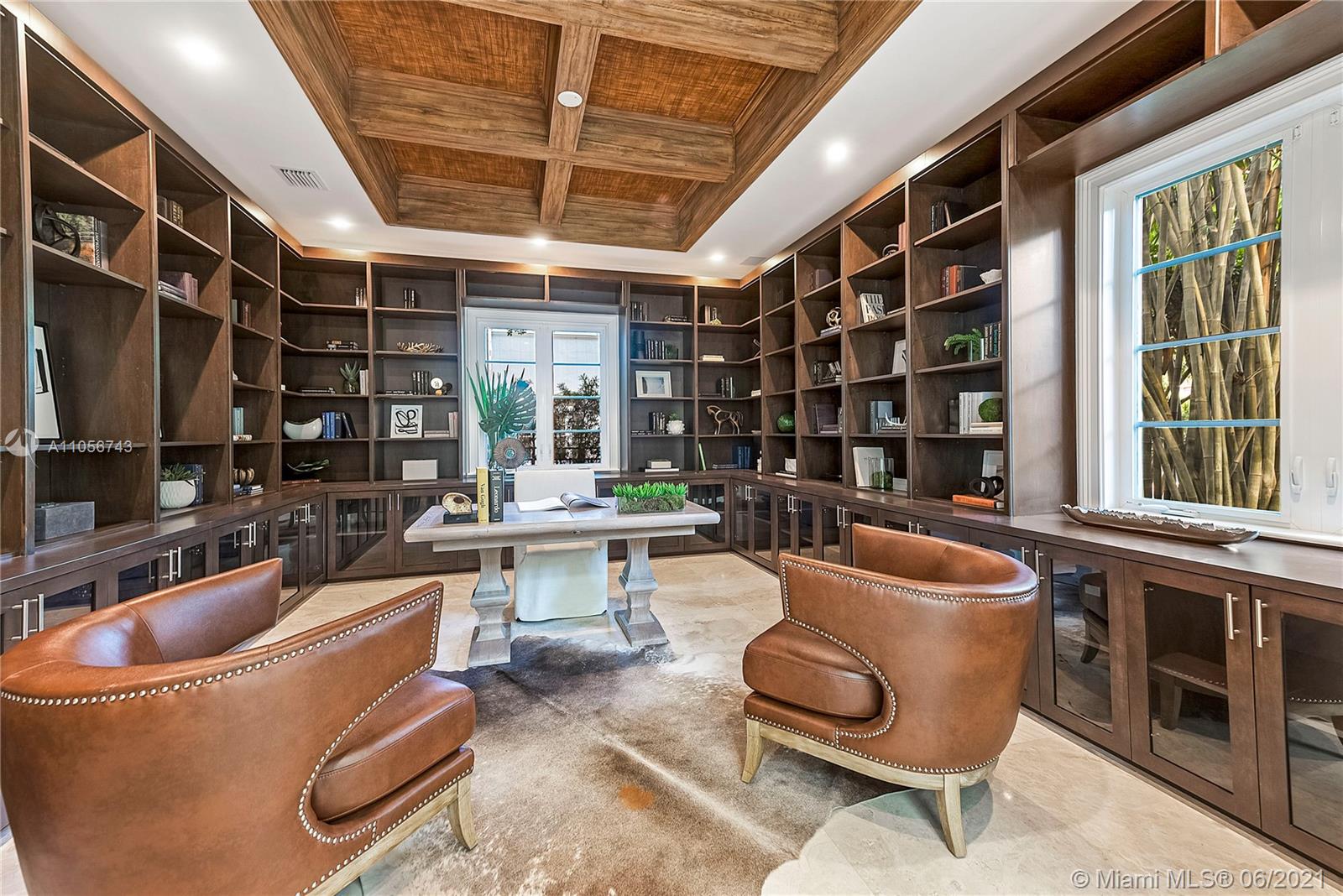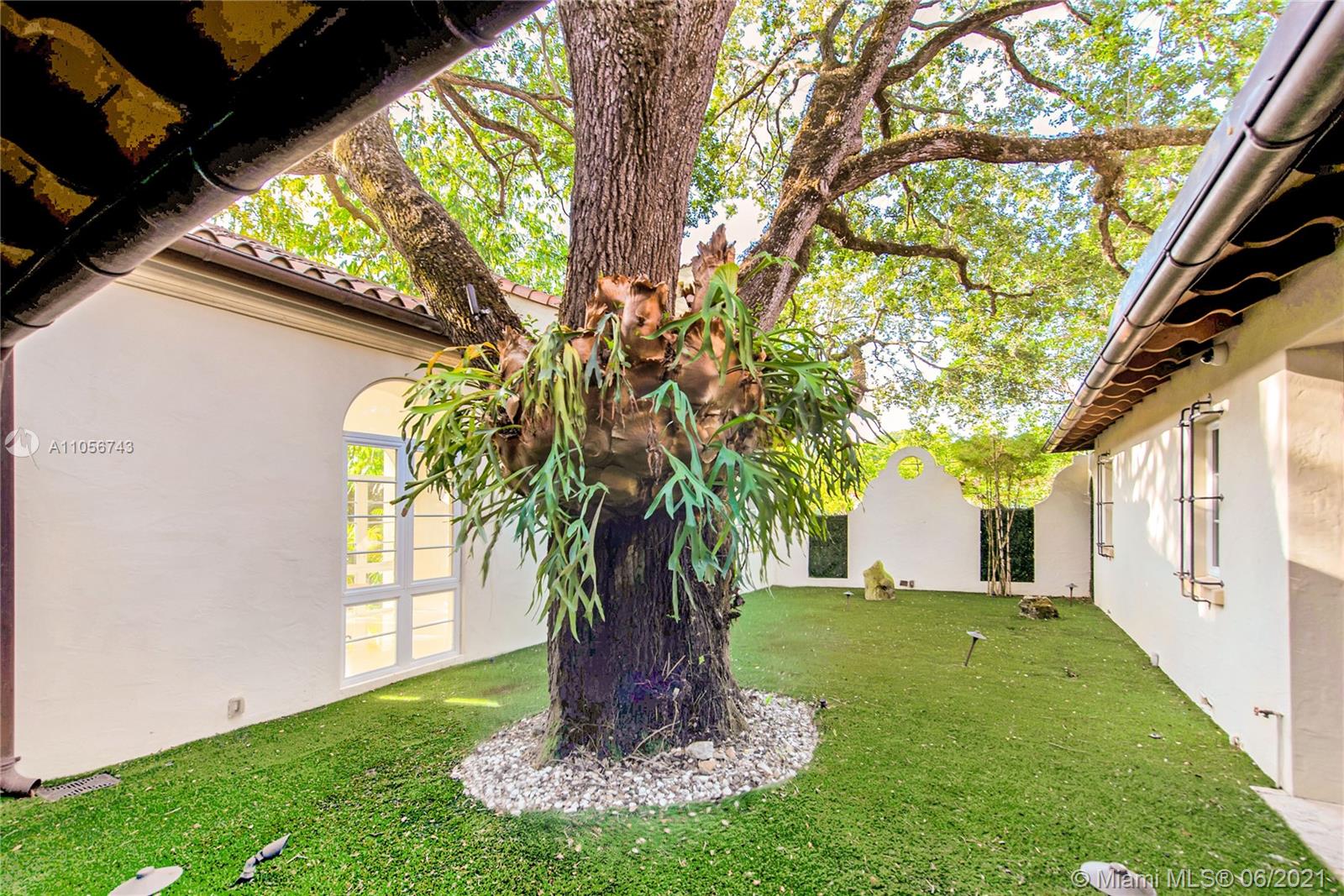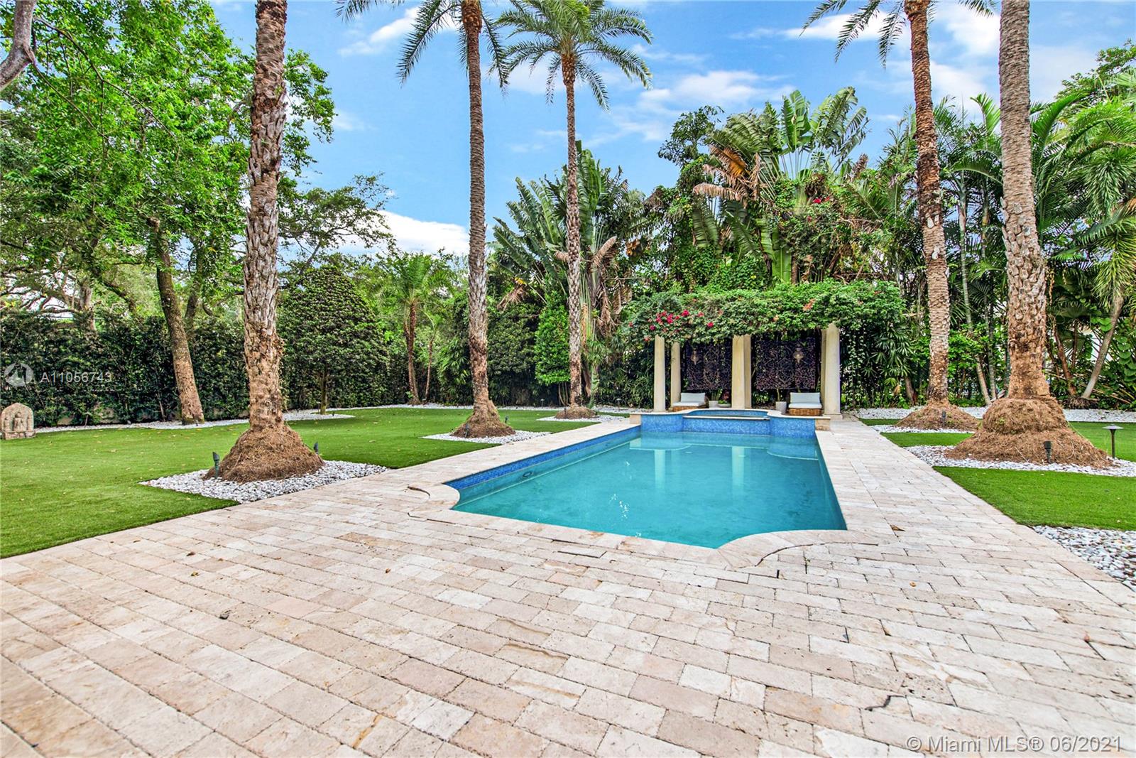 Majestic Gables home welcomes you with its old-world charm yet the luxury of newer construction. Built on an oversized corner lot in 2004 this 6-bedroom 6.5 bath offers room for the entire family and an en-suite bath for every bedroom. Enjoy formal living in the vaulted wood beamed living room with fireplace or the stately library. Relax in the large family room off the kitchen that opens to one of the many covered patio areas. Long linear pool leads the eye outside to enjoy the lush oversized fenced backyard. Great walkability to the Biltmore Hotel and downtown Coral Gables. This home has much to offer… Even a built-in outdoor pizza oven!