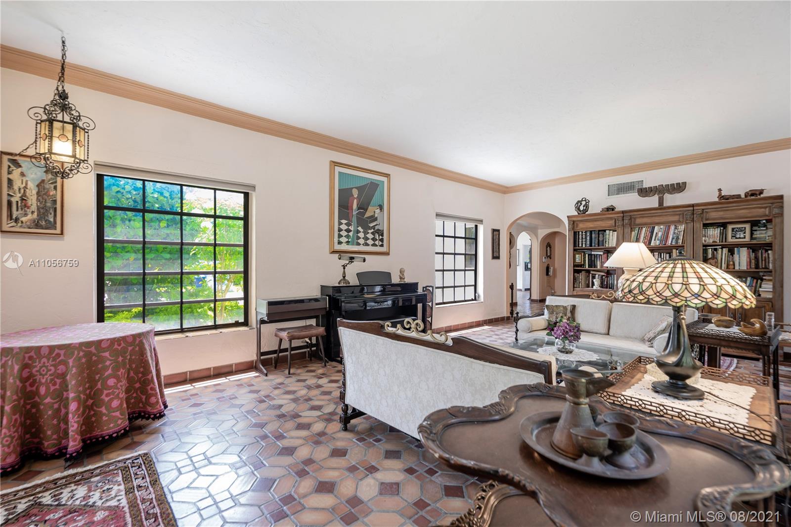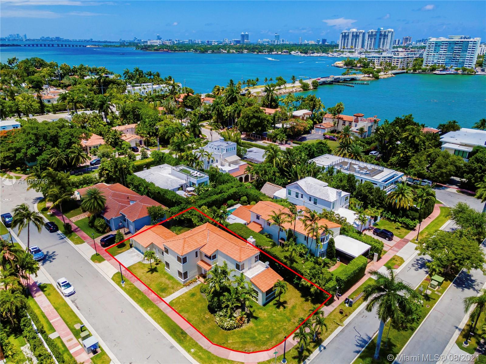 Prestigious Venetian Causeway - Rivo Alto Island - Classic 1936 Art Deco Home awaits your special vision. Large Corner Lot - minutes to Sunset Harbour, Lincoln Rd dining, shopping, fitness & more. Architectural features include: high ceilings, deco details, archways, moldings, original Spanish tile & wood flooring. Bedrm w/en-suite baths. 4 BRs (2 principal suites) + Florida room, formal DR, large kitchen & LR w/fireplace. Off utility room, a 2 car garage has been enclosed, finished & adds substantially to under A/C living space - may be used as separate guest quarters. Updates made to electric, plumbing, roof & 3 Central A/C units. Room for a pool. Best value today on the Venetian Islands. New Home across the street sold for approx. $20 Million. Check out Matterport virtual tour on link.