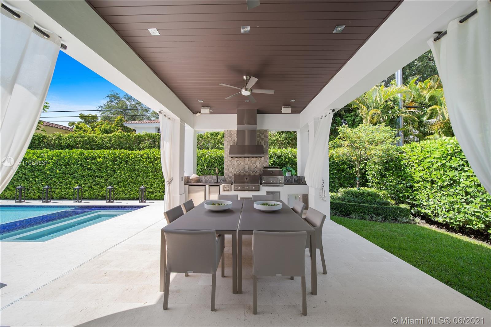 This beautiful, modern home built in 2017 is situated on a gated 11,500 SF lot located in the highly desired area of Coral Gables. Boasting 5,500 SF of living area, with 5 bedrooms and 5.5 bathrooms, and a clearly defined floorplan, there's room for the whole family to live, work, and play! Sophisticated & elegant finishes throughout the home, including a spacious master bedroom with a terrace that overlooks the pool and garden area. Sit back and relax in your home theatre or entertain outdoors by your fully-equipped outdoor kitchen, patio, and sleek pool. With terraces throughout, this home makes indoor-outdoor living look easy. Just minutes from Riviera Golf Course, the University of Miami, and the Shops at Merrick Park, you don’t want to miss out on this gem of a home.