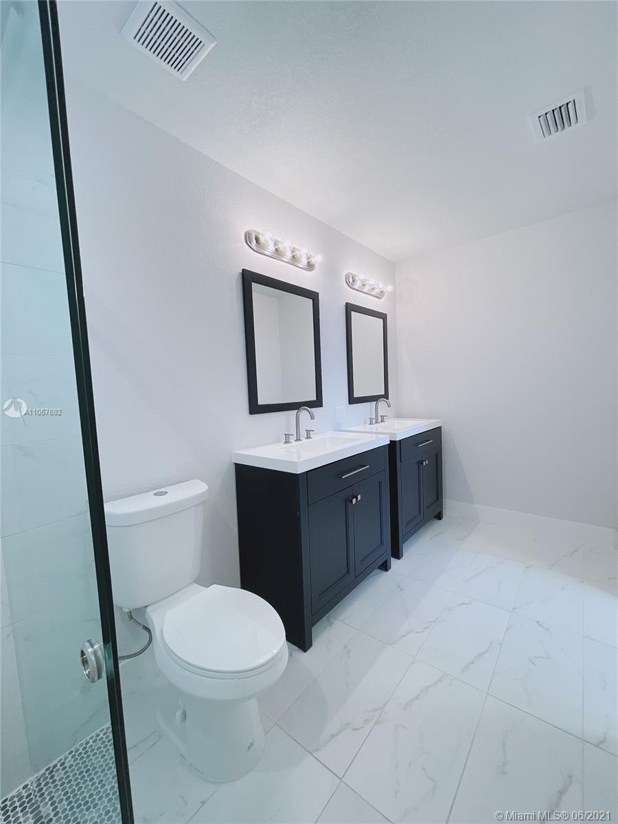 Welcome to a brand new corner lot home. The house has an open floor plan with a clean look, modern kitchen with quartz countertops. Beautiful flooring with gray wood grain tiles throughout, porcelain tiles in the bathrooms with stunning modern finishes. The master bathroom boasts two vanities and a shower tiled to the ceiling, and custom made glass door. The home also features an automatic sprinkler system, hurricane impact windows, 4 lights fans, 9 camera security system, and ADT security system. Black out shades, washer and dryer are being installed. Door bell ringer with echo and WiFi controlled nest. Great natural light throughout. This home is a short drive to the beach, restaurants, and airport.