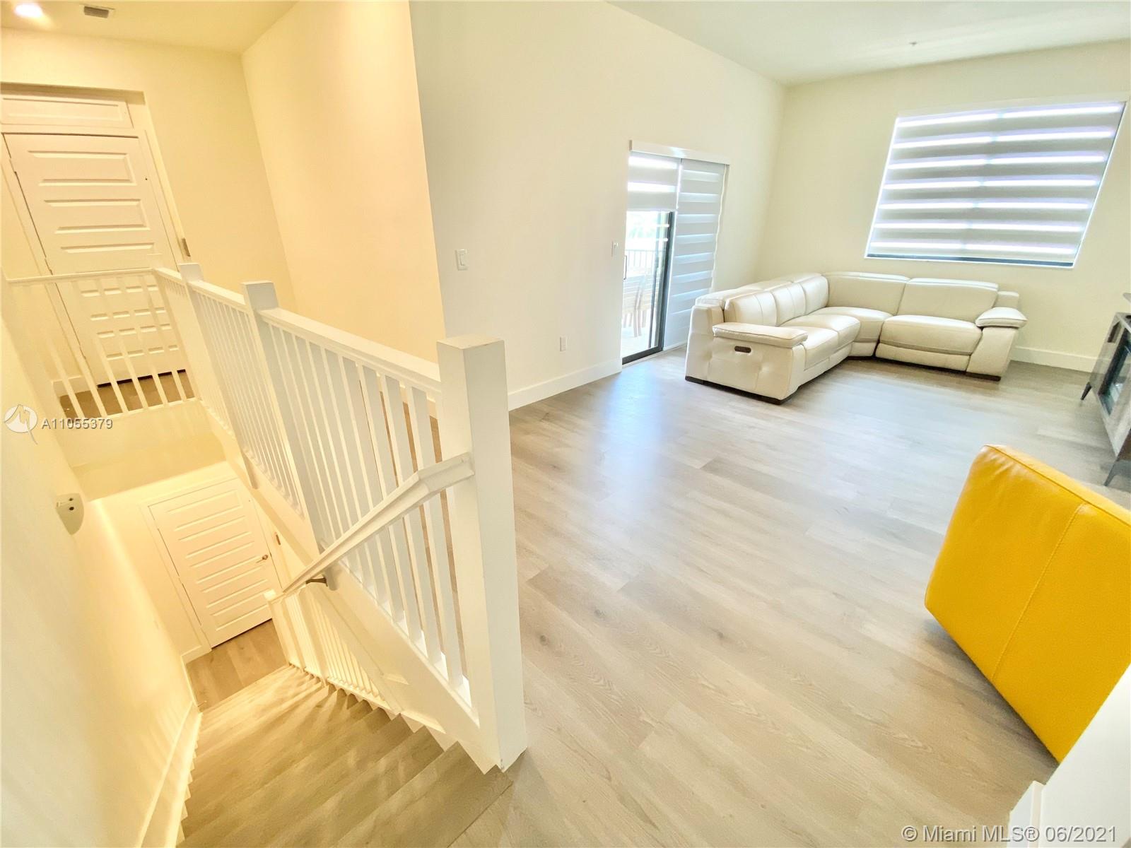 For sale, this stunning corner 4 story Townhome at URBANA Downtown Doral. This Townhome model LB, features 3 bedrooms, 3 baths, 2 powder rooms, a media room, Skyview terrace, with BBQ area, private elevator, 2-car garage, and much more. Enter through the spacious covered entry into the inviting foyer and reception lounge with adjacent powder room. On the opposite wall, a door leads to the 2-car garage, while on the west side of this space both a stairway and elevator provide access to the other floors. Second floor dining room and kitchen overlooking an expansive balcony. Third floor is occupied by the luxurious owner's suite, bedroom 2 and its private bathroom; and a laundry closet. Fourth story, entertainment area, Room 3, covered terrace with BBQ Area, and full bath. READY TO MOVE IN.