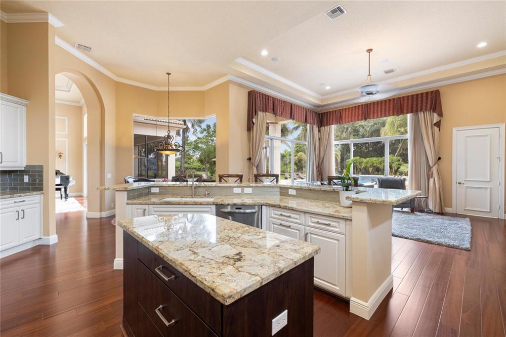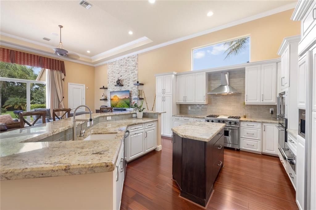 LUXURIOUS 1 STORY ESTATE IN PRESTIGIOUS STONEBROOK ESTATES! NESTLED ON A BUILDER'S ACRE AND FINALIZED WITH 4 BEDROOMS PLUS OFFICE, 4 FULL BATHS AND 3 CAR GARAGE. SPLIT FLOOR PLAN WITH IMMACULATE WOOD FLOORS THROUGHOUT LIVING SPACES. INCREDIBLE MASTER SUITE WITH PRIVATE SCREENED PATIO AREA ALL TO ITSELF! MULTI-TIERED, SOARING DECORATIVE CEILINGS IN SOCIAL AREAS. GOURMET KITCHEN W/ HIGH END WOOD CABINETS, CENTER ISLAND AND VIKING APPLIANCES W/2 SEPARATE OVENS (1 GAS OVEN & 1 SEPARATE ELECTRIC OVEN). HUGE PRIVATE BACKYARD COMPLETED WITH OVERSIZED RESORT STYLE POOL/SPA, GENEROUS COVERED AREAS FOR OUTDOOR LIVING AND DINING WITH A VERY LARGE PAVED AREA PERFECT FOR ENTERTAINING! BEAUTIFUL VIEWS OF BACKYARD AND LUSH LANDSCAPING FROM ALL LIVING AREAS. TONS OF LIGHT!! THIS HOME WILL NOT DISAPPOINT!