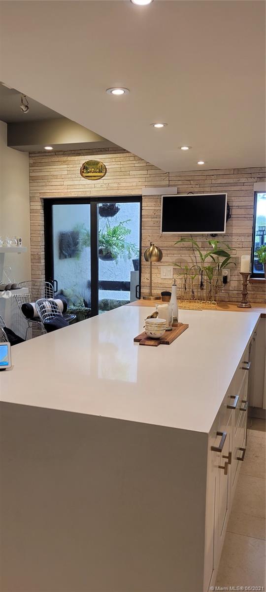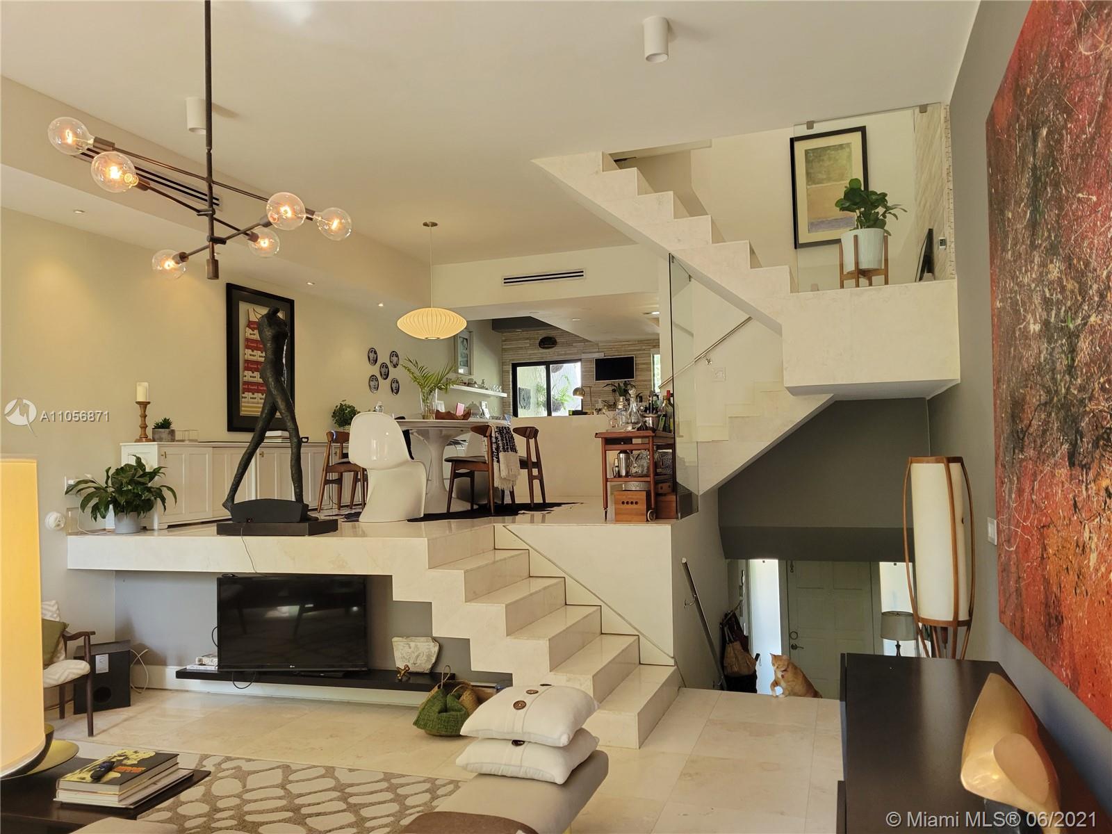 2/2.5 Three story townhouse on lovely quiet street, East of US1. Attached garage and additional storage/flex area on lower level, . SE exposure contemporary design with luxe finishes. Marble flooring on 1st and 2nd fl. and newly installed white oak, Chevron pattern LVT on 3rd fl. Stacked stone backsplash, all white kitchen w/white quartz and butcher block countertops. Stacked stone on accent walls. Owners are Realtors, General Contractors and design enthusiasts. Roof 2 years old, A/C is 4 years old. Lv room leads to deck, kitchen w/balcony. Each bedroom w/ensuite and private balcony. Half bath on 1stfl.Impact windows, built-in Bose spkrs. Dead end St. backs up to Nature Preserve w/walking&bike paths and kayaking to Oleta Rivr. INCREDIBLE $50 Mos HOA. NOT SUBJECT TO APPRAISAL.