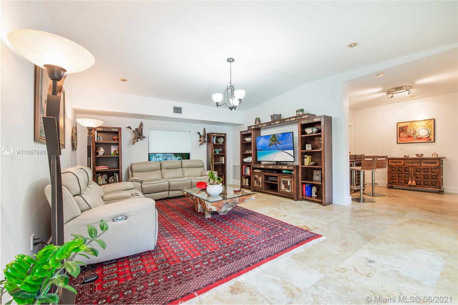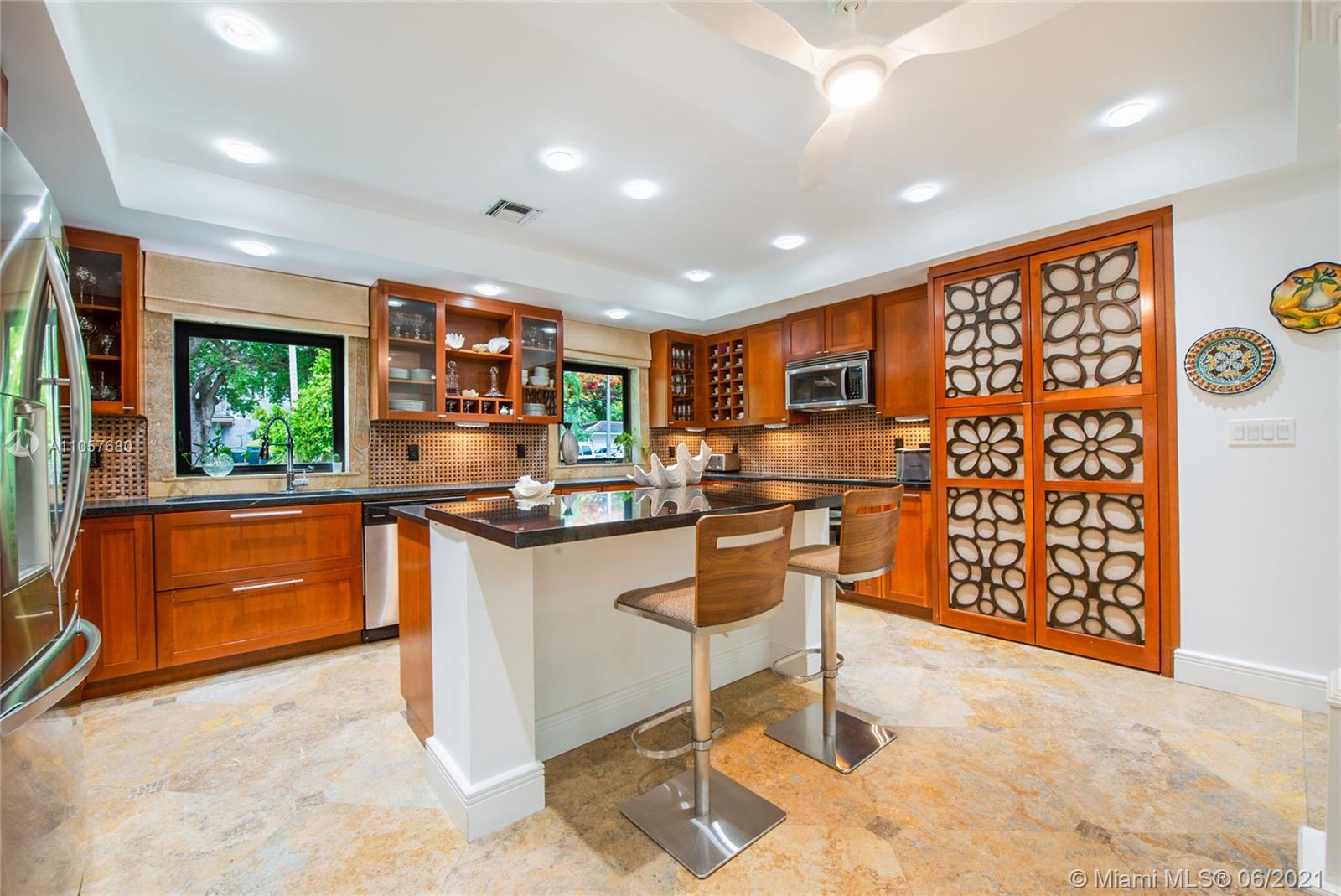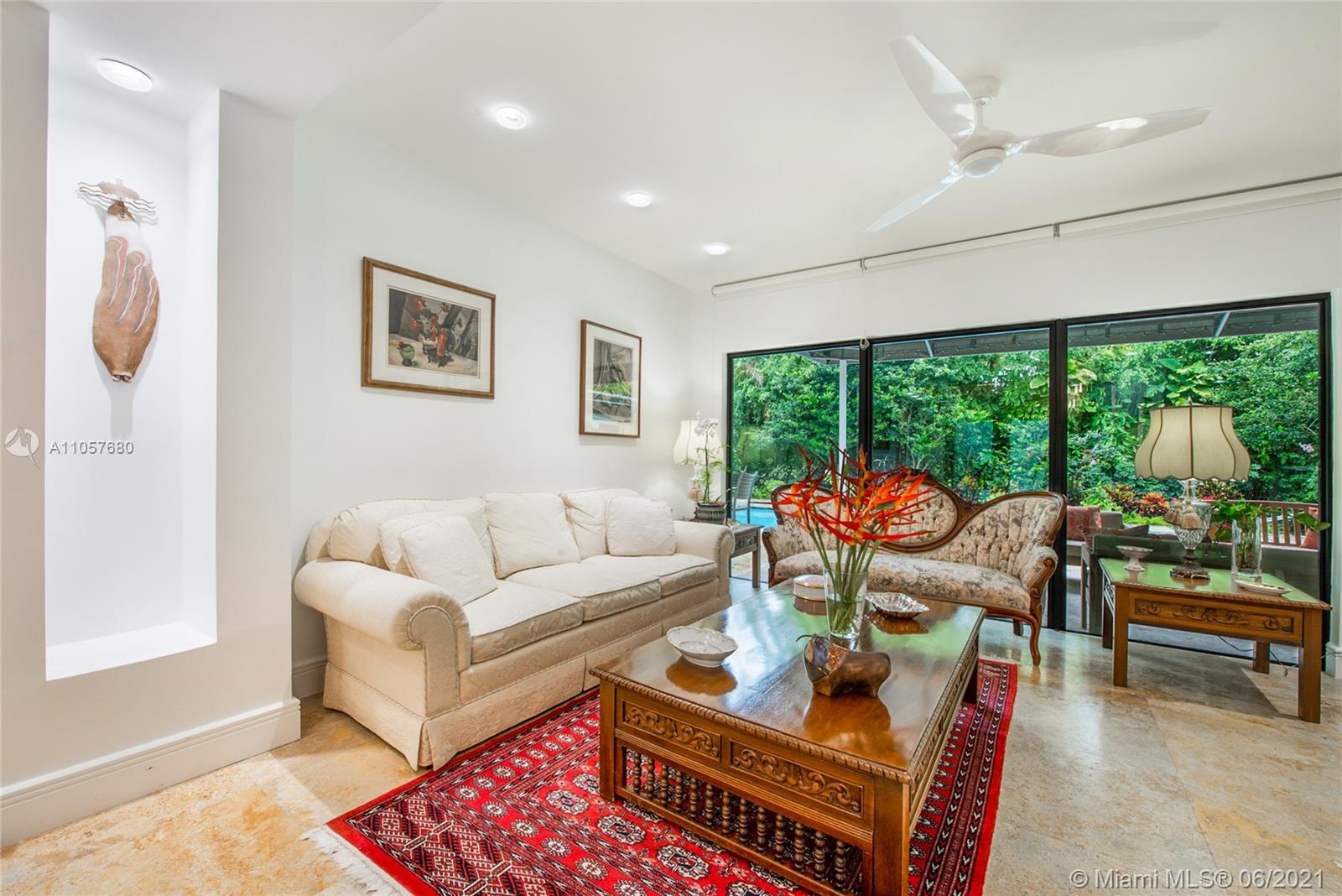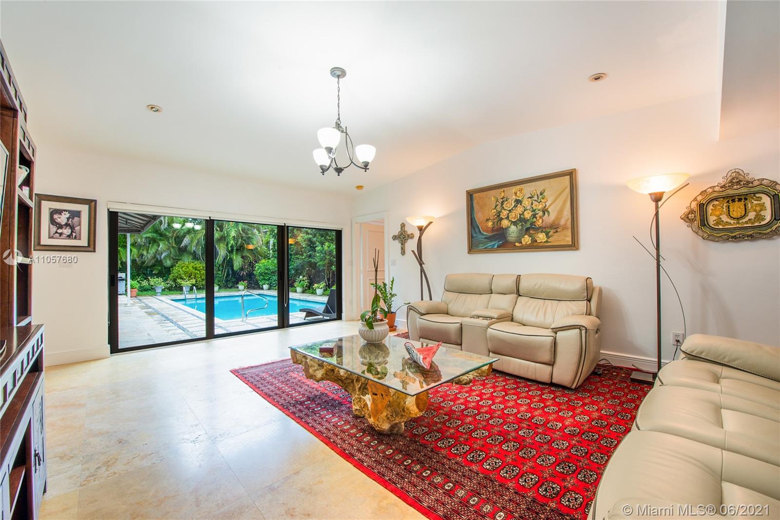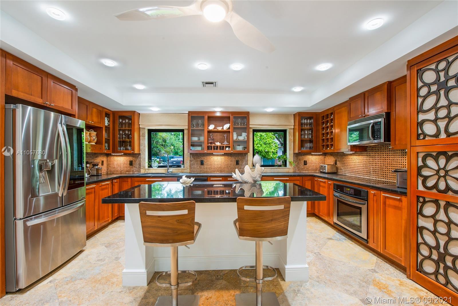 Sophisticated and well-appointed 1-level residence in a coveted South Gables location! Featuring recently installed roof and newer low-e impact-resistant windows and doors (100% impact all around). Graced with marble and wood floors, the residence revels in a fantastic floor plan where the west wing features a bar, indoor laundry + bath, expansive media room and the spacious main suite. The balance of the beds and baths are on the east wing of the home. It’s Florida living at its finest as the covered terrace and pool/patio are ripe for sunbathing and dining al fresco. Home awaits you here…