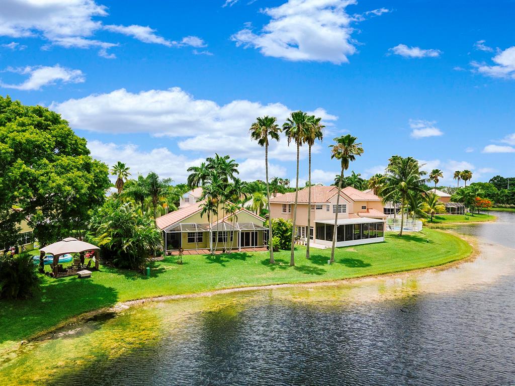 Enjoy the beautiful breeze and privacy of this waterfront home on a cul-de-sac! Bright, open floor plan with vaulted ceilings and a breathtaking view in Weston! Zoned for A+ schools in sought after gated neighborhood with very low HOA! Seller is a wonderful painter, she has created custom flooring and accent pieces through out the home along with custom built-ins that add to the character and charm! This family home has been loved and cared for meticulously! Kitchen has been updated w/ stainless steel appliances, roof-2014, AC-2017. Close to hospital so power is restored quickly during storms! There is plenty to do at home with bass fishing on the Jon Boat, relaxing in the luxurious private Caldera Spa or walk to the community pool, playground and basketball courts! This home has it all!