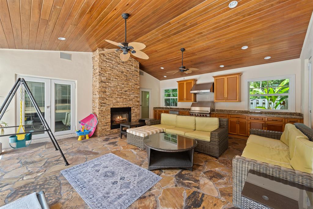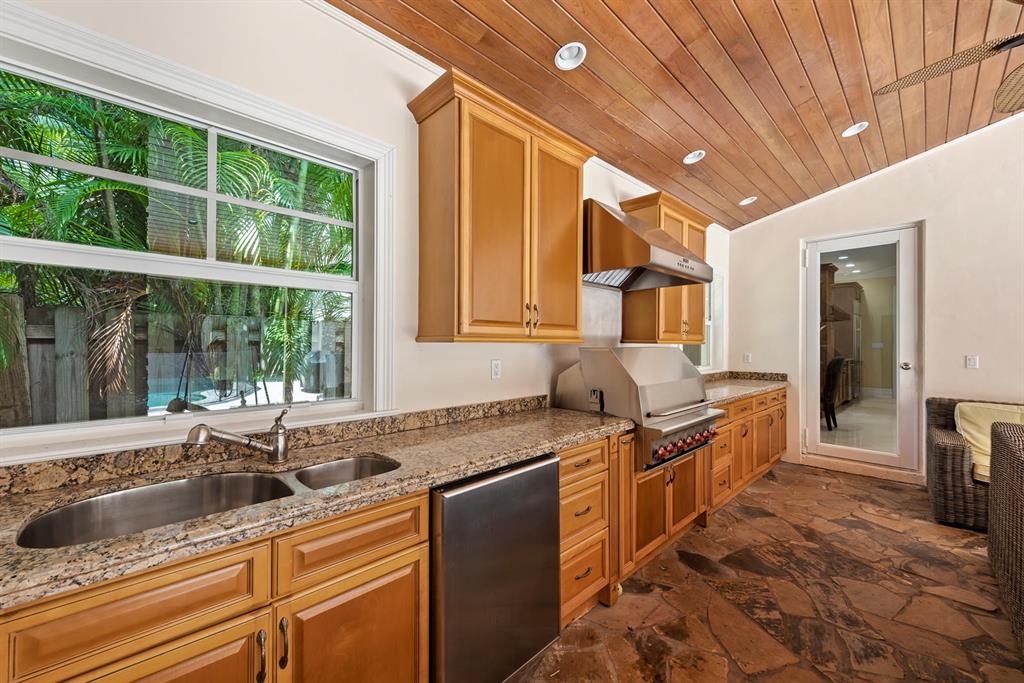 Large private estate in historic Colle Hammock minutes from Las Olas Blvd. 5 bedroom, 5 bath, 2 powder room. Cherry wood/marble floors/granite counter tops. Huge island in kitchen connected to living room. Open floor plan. Private dining room connected to sitting room. Florida room screened in and remote controlled/built in grill and summer kitchen connected to private guest cottage with full bath. Heated Pool. Mature landscaping provides complete privacy. Generator. Skylight. Wood ceilings. Fire places inside and out. Parking by permit only in neighborhood. Streets closed to through traffic during most city events. Walk to beautiful waterfront parks. 15 min walk to beach on Las Olas. Tenant occupied until September. Amazing property and a must see!