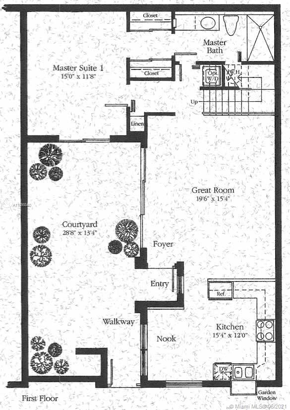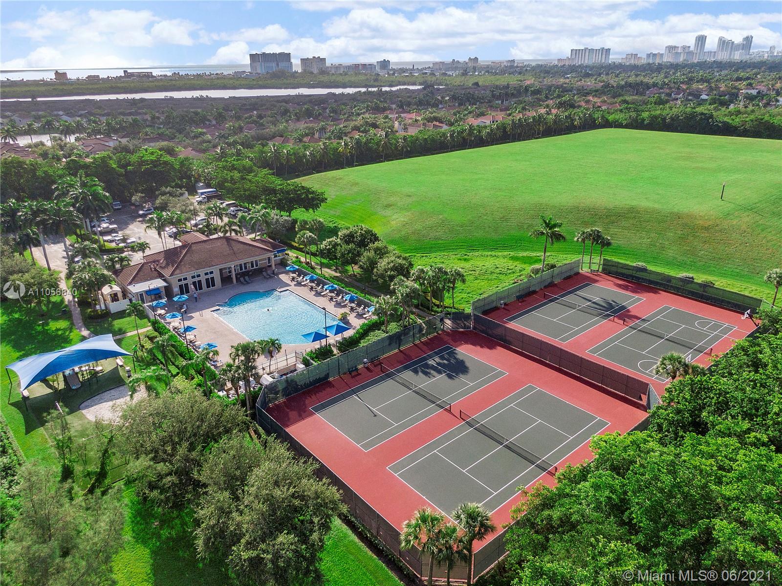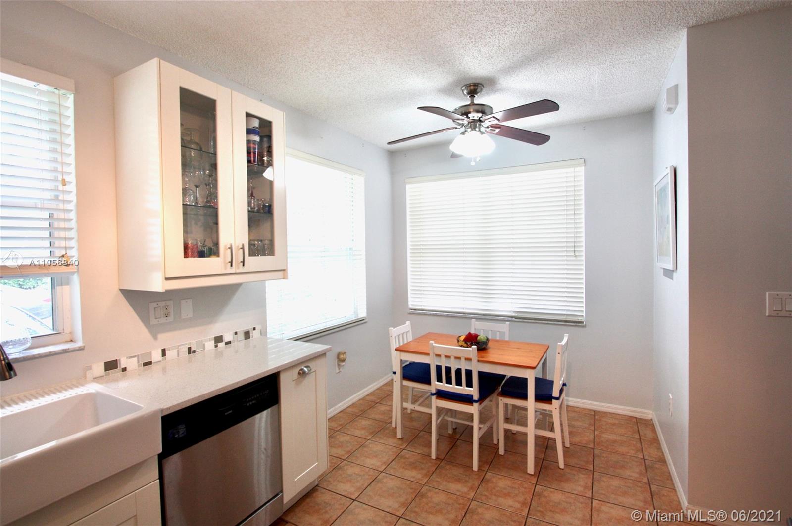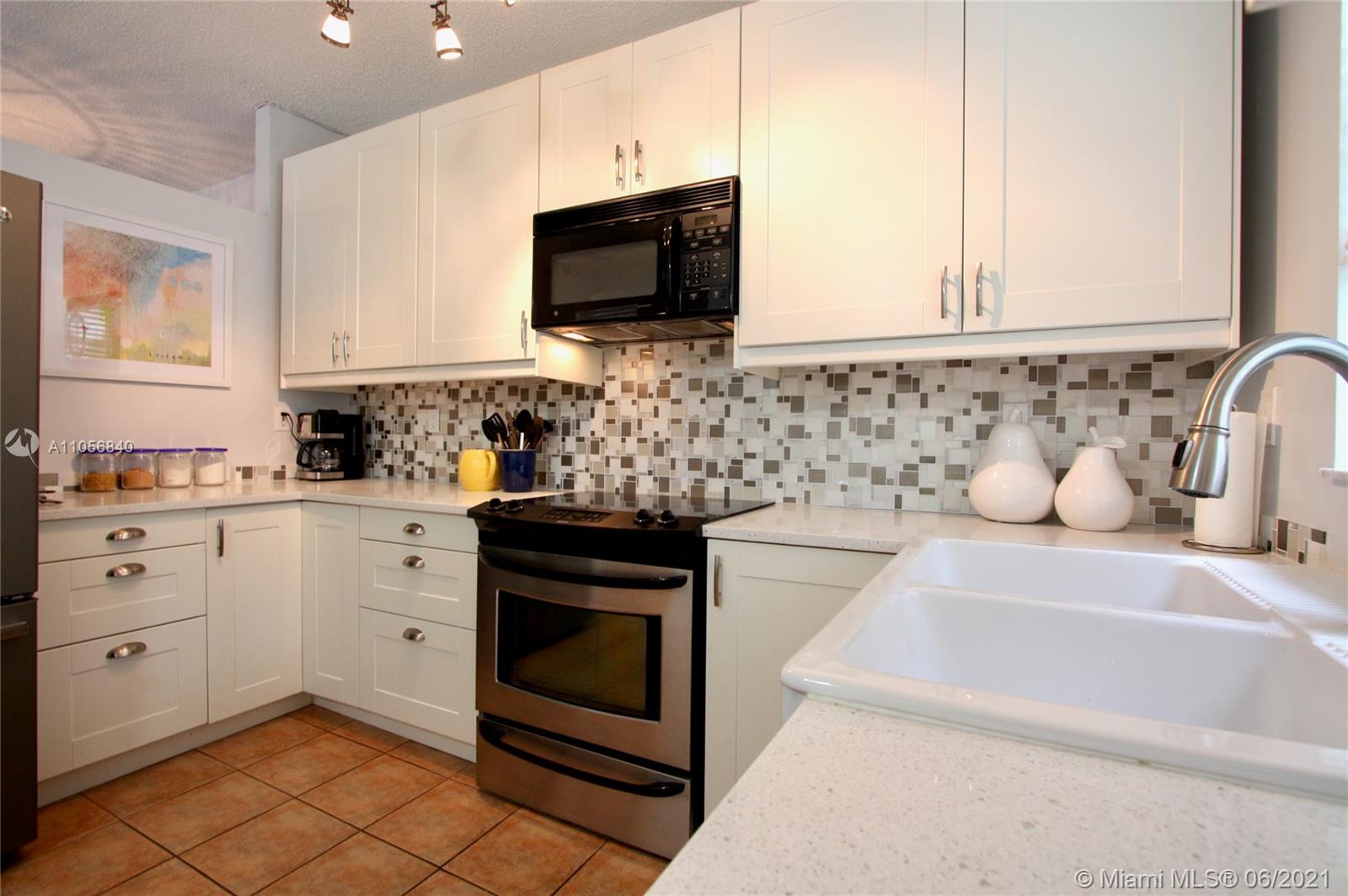 Beautiful townhome in gated community near beach & Downtown Hollywood is move-in ready. The eat-in kitchen has been upgraded with tall, white cabinets, quartz counters, new appliances and a porcelain farmhouse sink. Two primary suites, one downstairs and one upstairs. Upstairs suite has a vaulted ceiling, ceiling fan and a huge walk-in closet. Upstairs primary bath has separate shower and soaking tub. First floor has tile and second floor and stairs is wood-look vinyl. Stack washer & dryer. Tankless hot water heater. Large courtyard for barbecuing and entertaining. Full set of accordian hurricane shutters. New roof! New gutters. West Lake Village has tennis, heated pool, Jacuzzi, exercise room, clubhouse, kids play area & security. Low HOA fee. Tree-lined street. Close to guest parking.