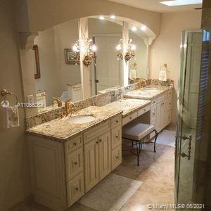 This home offers extraordinary amenities: 3 bedroom & office/den, 3and1/2 bath, lakefront property. Screened-in patio includes pool jacuzzi with waterfall, pool house with BBQ , wet bar and bathroom. Half acre, 4204 sq. feet. Fully energy efficient with R-30 insulation, 2 attic temperature control systems, double panel windows and sliding doors, two central air units, separate pump for pool, waterfall, and jacuzzi. 4 zone sprinkler system. Alarm system with security cameras. Travertine floor throughout. Extraordinary view overlooking large lake from 45' X 45' screened patio and 17' X 16' deck. Circular brick paved driveway with overhang at the front entryway. Must be seen to appreciate.