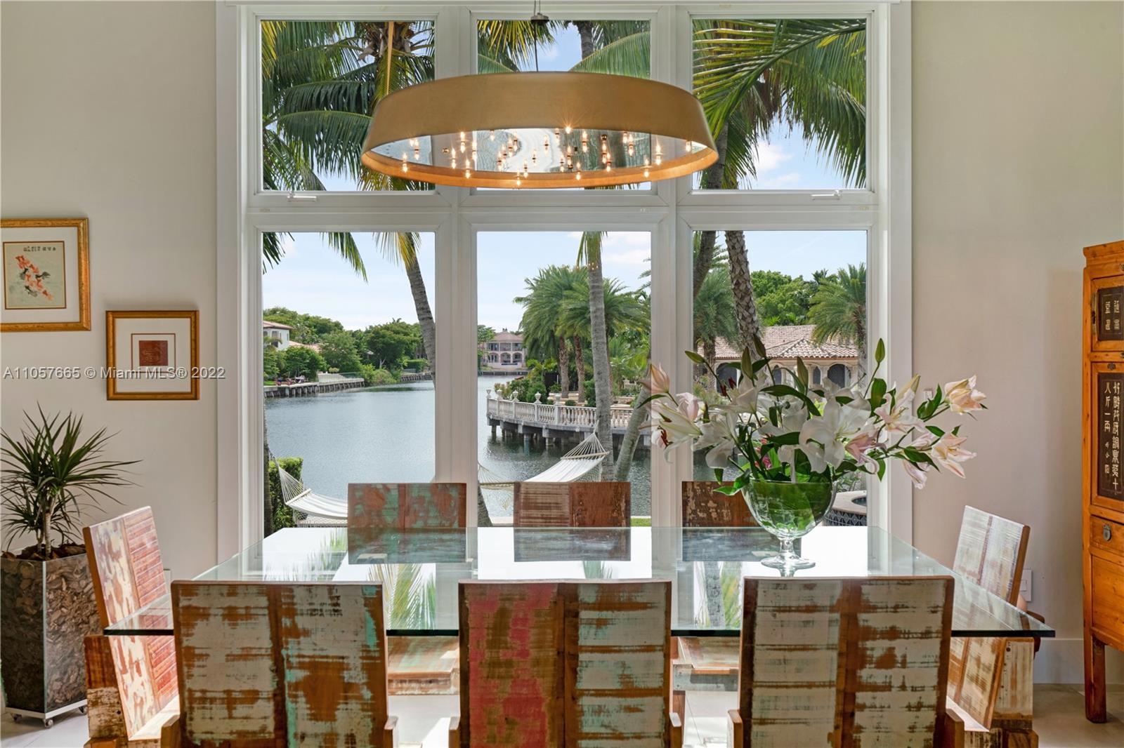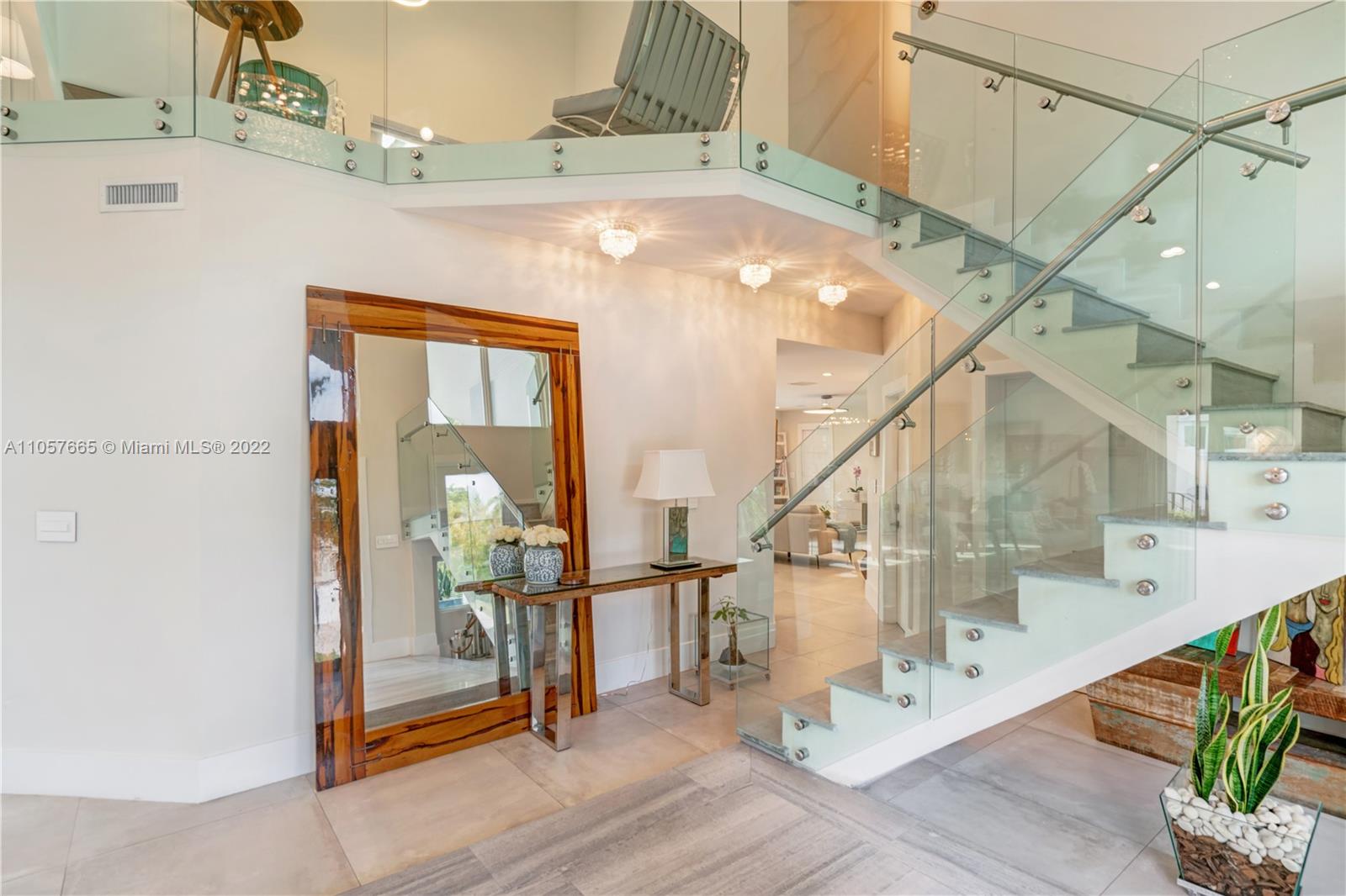 Say hello to your dream waterfront home resort-style living in Gables by the Sea, a tranquil guard-gated community. Live amid beauty and serenity in a spectacular 2-story, 4,056 SF remodeled for luxury living. Newly upgraded with a $500K renovation to the highest standards, w/high ceilings, Porcelanosa floors, impact windows and doors throughout, brand new kitchen, roof and driveway. Take in the gorgeous sunsets over the water, either from the hammocks swinging between the palm trees or while indulging in the Jacuzzi cascading into the pool. Prepare meals in the beautiful, open-plan kitchen complete with a giant natural quartzite island and Sub-Zero/Wolf appliances. Wake up to a breakfast in the master suite’s waterfront balcony overlooking a gorgeous patio and lush tropical surroundings.