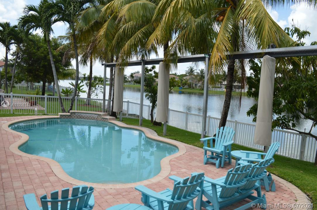 Gorgeously renovated lakefront home in one of the most sought-after resort-style living communities in Miramar. This property is in the subdivision of Ravello within Riviera Isles. The Property is 2860 square feet and has been renovated with utmost care. This beautiful 5-bedroom 2.5-bathroom home is fenced. It has heated salted pool. Spacious kitchen with built in banquette along bay window with all stainless-steel appliances. Brand new porcelain tile (24x48) floor downstairs. Brand new AC with 10 years warranty. Generator and custom electric installation to switch from FPL service to the generator in case of outages(hurricanes), accordion shutters through the house. Large steam-clean washer and dryer with custom cabinetry, new state of the art compact water heater