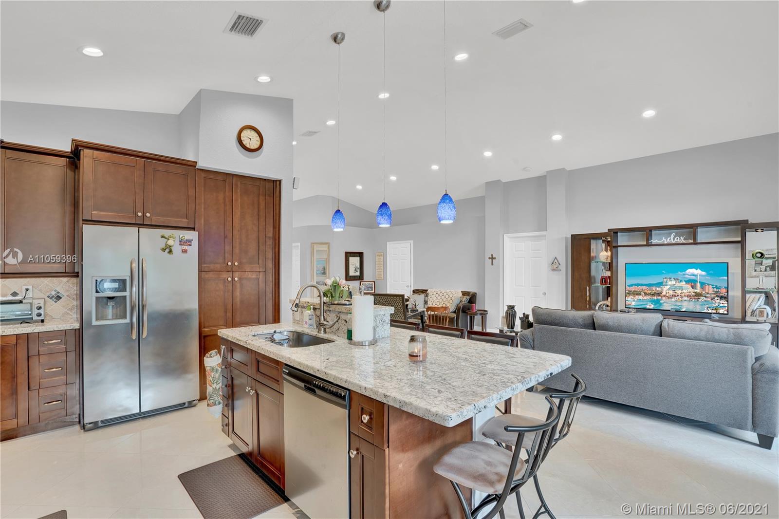 Very rare opportunity to own this one story home completely updated! Nestled on a lovely cul de sac and lake view street. Has plenty of attractive features such as a welcoming foyer, 4 Bedrooms, 2.5 Bathrooms, large living room, porcelain floors all throughout, a dining room adjacent to a sleek updated kitchen with s/s appliances, hard wood cabinets, a custom-built pantry & a breakfast area. A family room that opens to a beautiful and relaxed patio with lake view and plenty of space for friends and family gatherings. Impact windows, laundry room, plenty of closets for storage & custom closet-cabinetry in all bedrooms. This is a must see! Great home perfect for entertaining & relaxing.