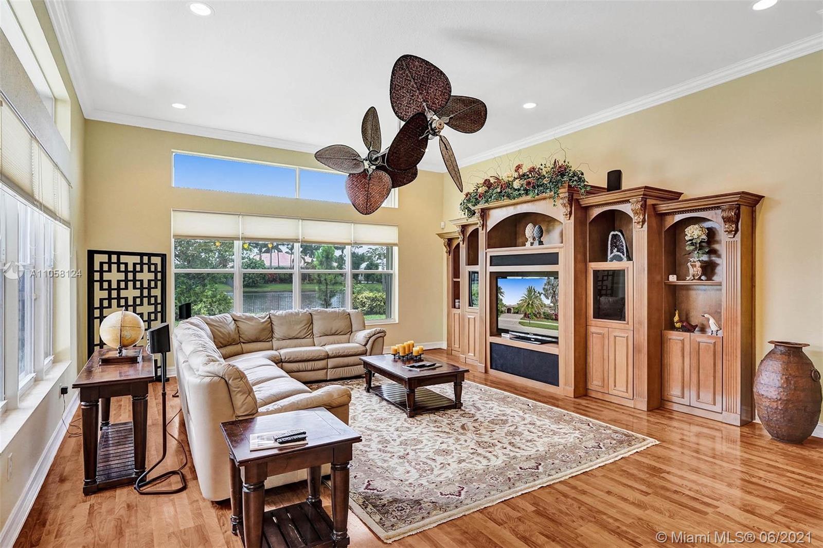 Stunning custom home situated on a builder's acre lot in the beautiful gated community of Riverstone offers 5bd/4.5ba+den+bonus room,3 car garage.This custom dream home has a grand foyer entry leading into a bright open living room with volume tray celling,fireplace and formal dinning room.The home offers a 3 bedroom split plan with a spacious master bedroom suite with his/her bathroom,wood floating flaques flooring ,crown molding throughout the home,closet organizer in bedrooms and garage system organizer in one car garage.Home features a large kitchen with stainless steal appliances,upgraded wood cabinets,center island overlooking the family room.Enjoy outdoor living in the large screened enclosed covered patio or extended paver outdoor patio with lush landscaping and tranquil water view