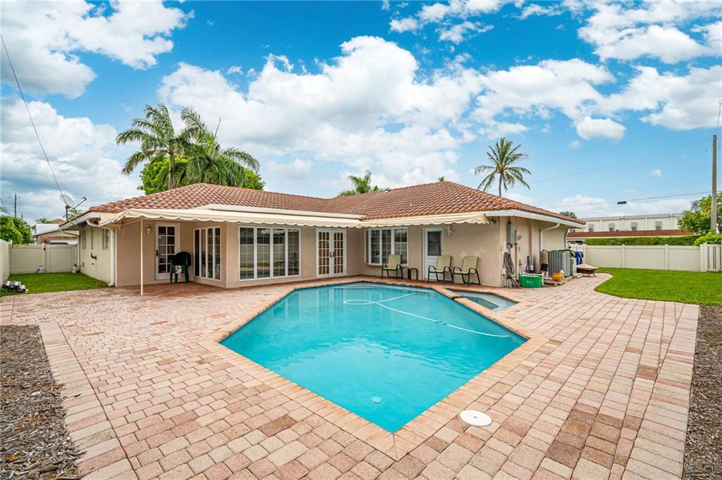 This is your chance to live in Coral Ridge Country Club! Great east Fort Lauderdale neighborhood just one mile to the beach! The floorplan of this spacious 4 bed/3 bath/2 car garage home offers a range of options. Perfect entertaining home has large open kitchen and additional dining area with built in wet bar opening to the pool. Bedrooms are split with two on each side of the house. Master bedroom's French doors open to a private side yard and patio with room for a hot tub or garden. Large corner lot (100x90) with side entrance 2 car garage and additional driveway and large circular driveway in front. Office nook, living/family room can be left separate or combined into a larger open living space. Large patio and pool with additional green side yards. Endless possibilities await!