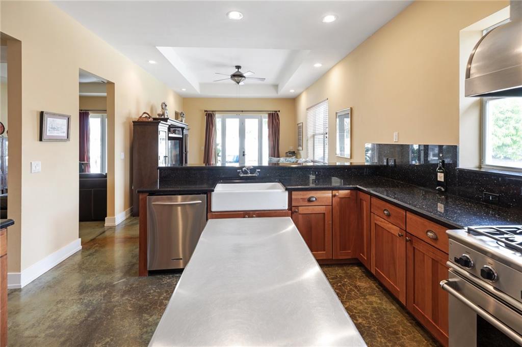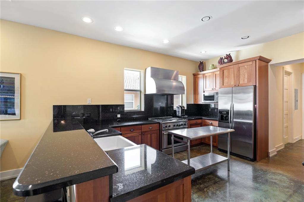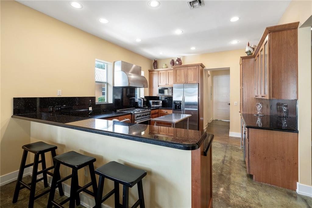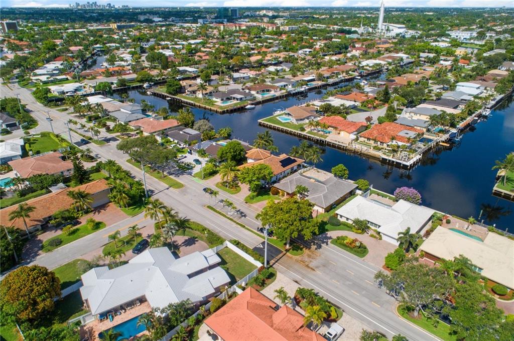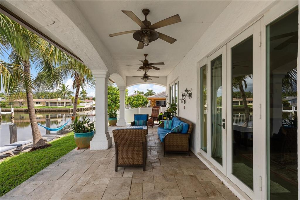 Rebuilt from foundation in 2004, 2882 sq ft of living space with 12ft high ceilings, 8ft impact windows and doors, unique polished concrete floors, gourmet kitchen with gas stove/oven, stainless steel appliances, custom cabinets, and granite countertops. 4 bedrooms in a split plan layout with 2 master suites, 3 full baths and ½ bath. Master suite bathroom has a jetted tub and steam shower. 2nd master bathroom has a jetted tub. On 80 feet of water with 50 feet of dockage with saltwater pool. Salt generator and pump are new as of 2021. Roof is 2 years old with full house solar energy. Beautiful backyard oasis patio/pool deck done in travertine. Tropical landscaping with room for a vegetable garden. Close to the beach, shopping and restaurants.