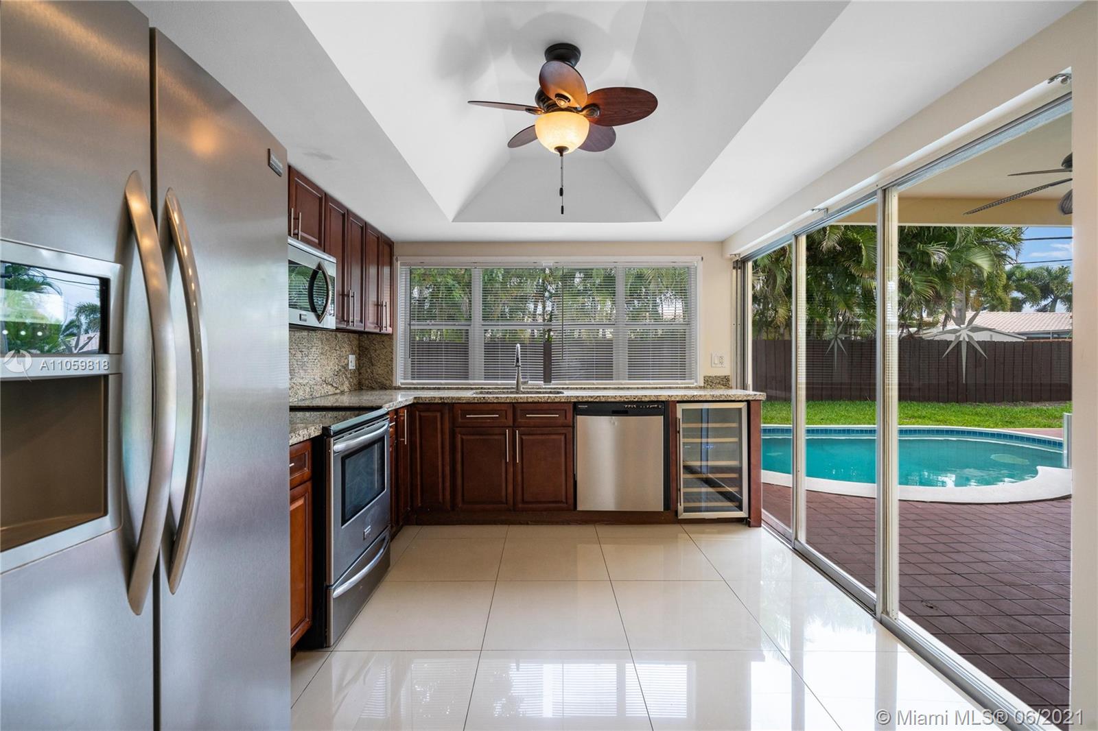 Gorgeous 4 bed / 2 full bath home with pool located in East Fort Lauderdale at Imperial Point. Featuring a fenced backyard with a a swimming pool, this beautiful home comes with porcelain tile floors, spacious bedrooms with ample closets, kitchen with granite counter top, stainless steel appliances and wine cooler. Covered patio overlooking the backyard and pool. Open floor plan with lots of natural lighting. Home also has a circular driveway with plenty of parking space. Convenient location just a short distance to grocery stores, banks, restaurants and minutes away from the beach. Virtual tour available.