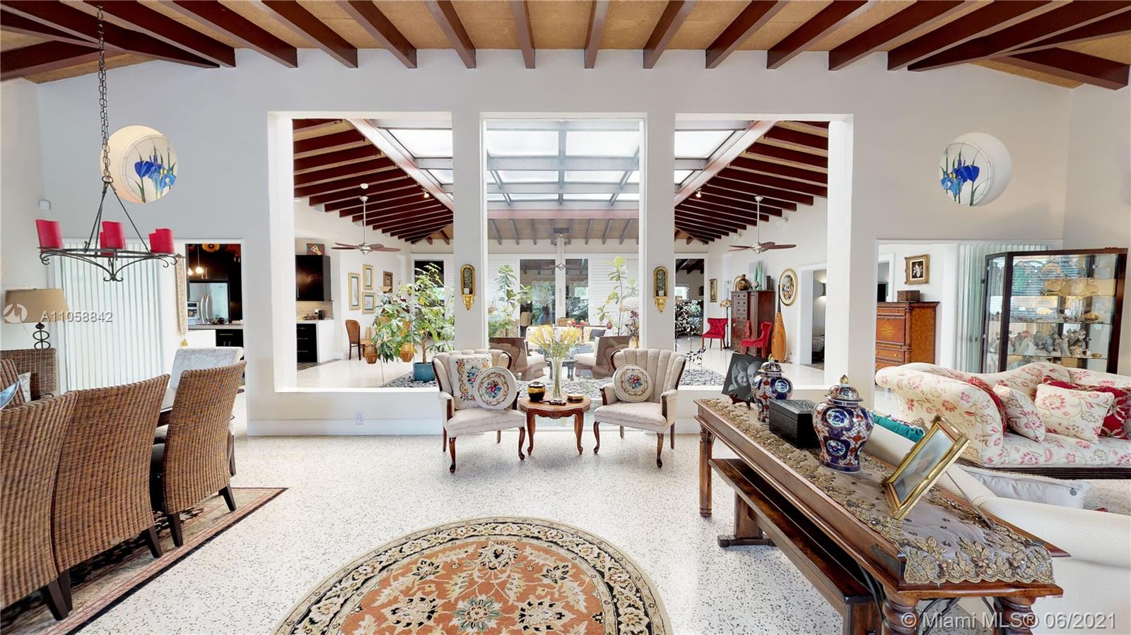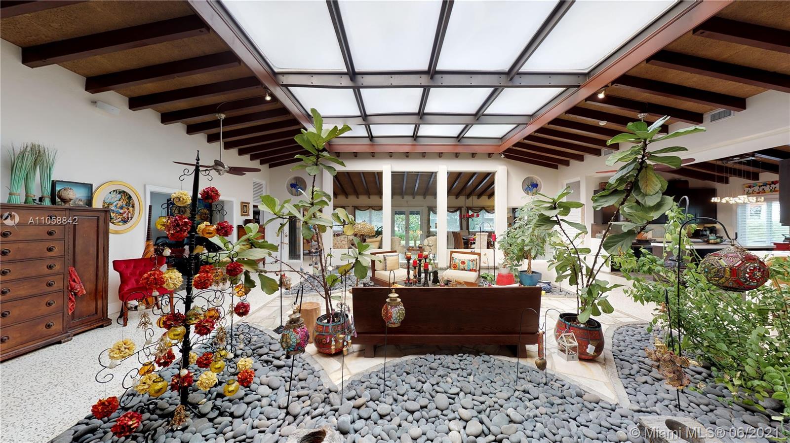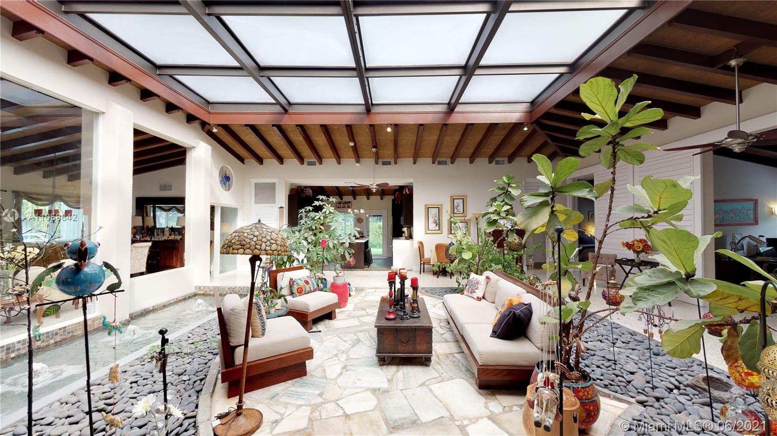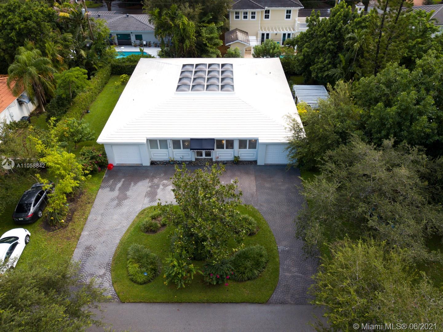 Unique Coral Gables home, Designed by Mid Century modern architect Tony Sherman, the house surrounds a 20 x 25 Zen room with an in-ground fountain. Overall under air as per appraiser is 3683 SQ FT, 3 bedrooms, 2 bath plus converted 4th bedroom and bath. 1 Car garage, large circular driveway, art deco curved glass and stain glass windows, 10 ft. barn doors, impact windows and doors, custom made wood kitchen cabinet, laundry room and exposed beam ceiling. House is on a Coral Gables double lot 100x100 in the Country Club Estate neighborhood. Walking distant to Fairchild Elementary