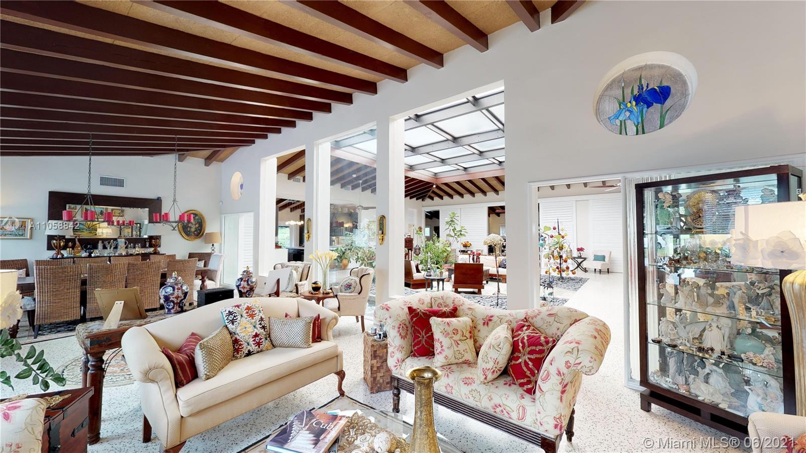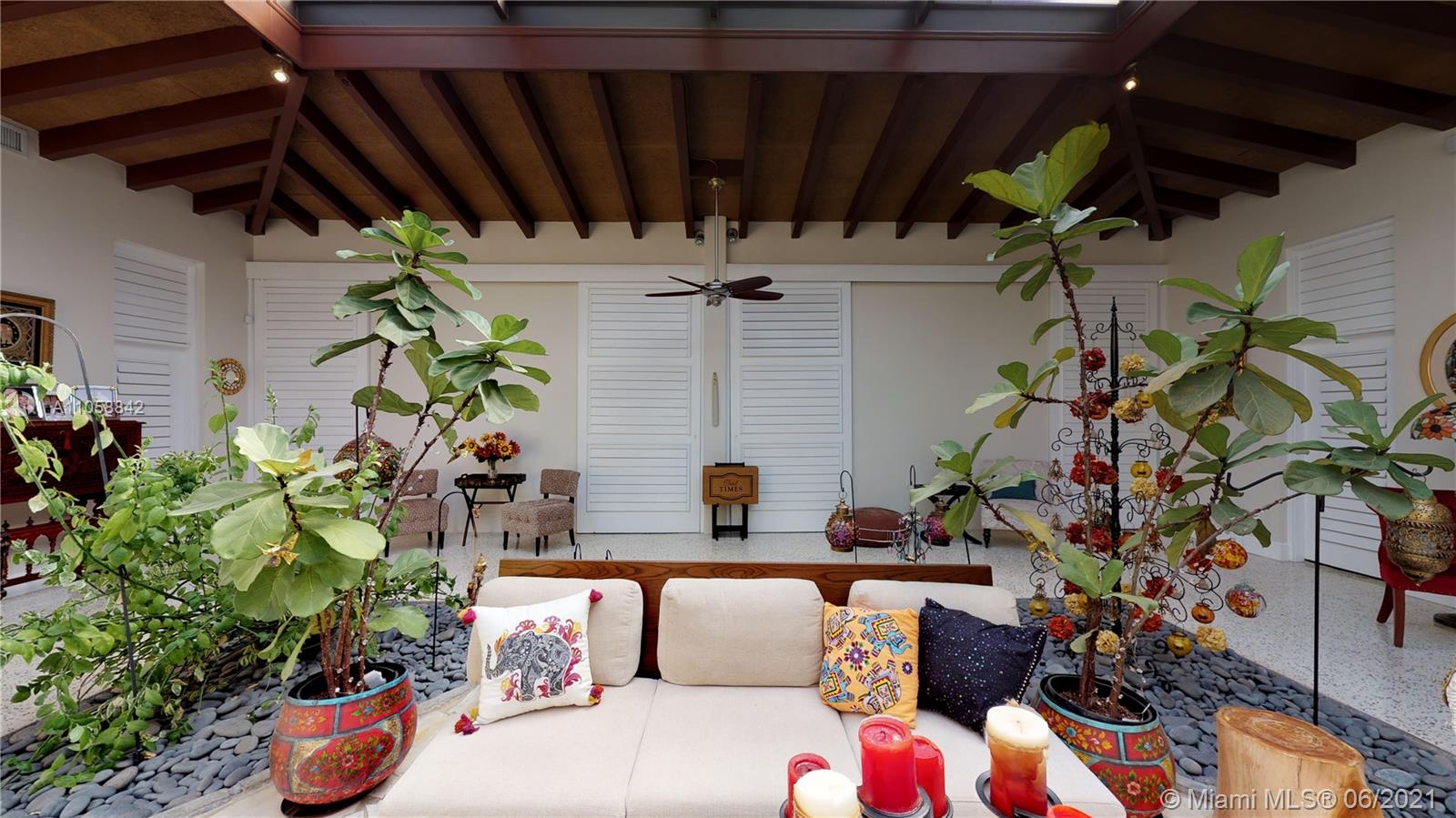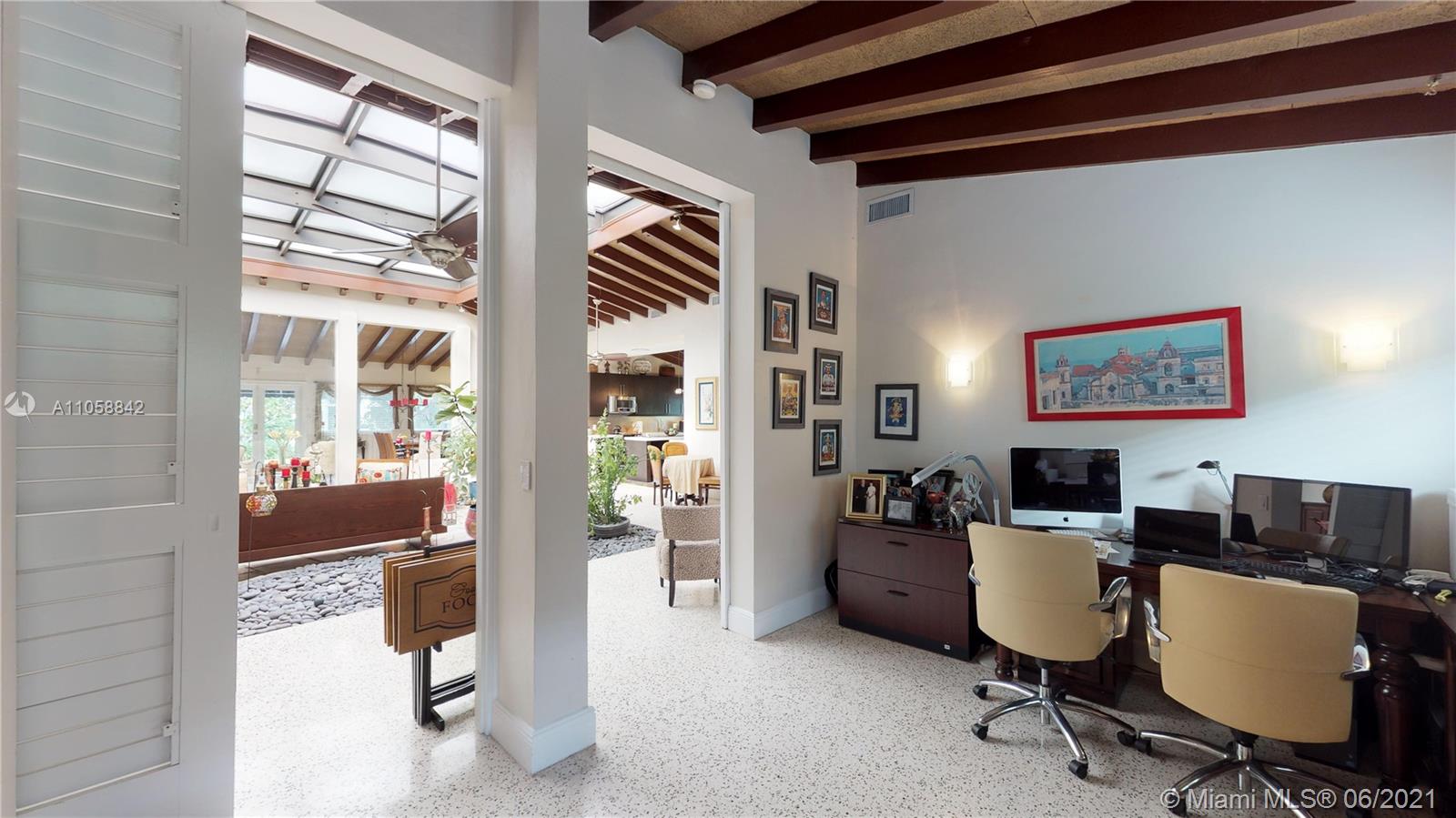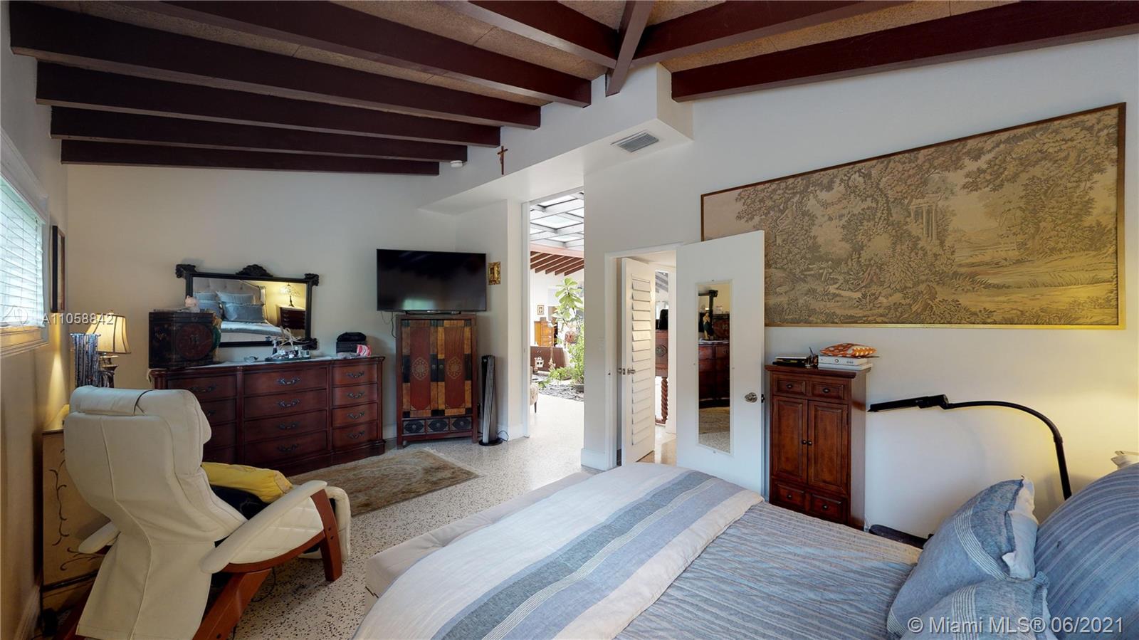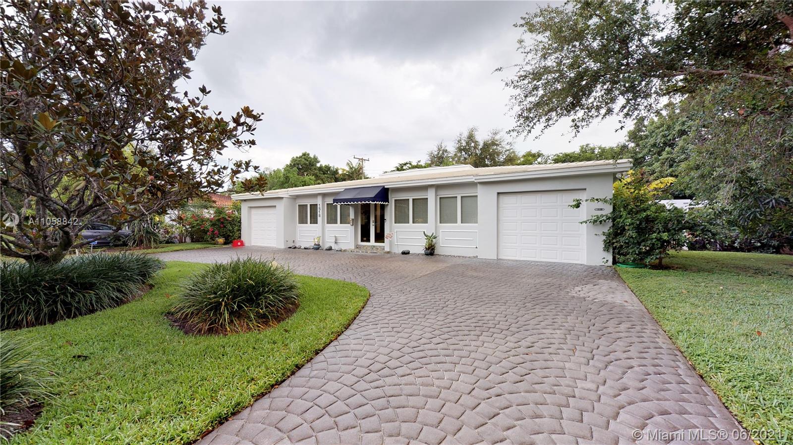Unique Coral Gables home, Designed by Mid Century modern architect Tony Sherman, the house surrounds a 20 x 25 Zen room with an in-ground fountain. Overall under air as per appraiser is 3683 SQ FT, 3 bedrooms, 2 bath plus converted 4th bedroom and bath. 1 Car garage, large circular driveway, art deco curved glass and stain glass windows, 10 ft. barn doors, impact windows and doors, custom made wood kitchen cabinet, laundry room and exposed beam ceiling. House is on a Coral Gables double lot 100x100 in the Country Club Estate neighborhood. Walking distant to Fairchild Elementary