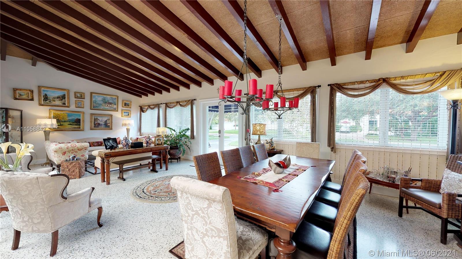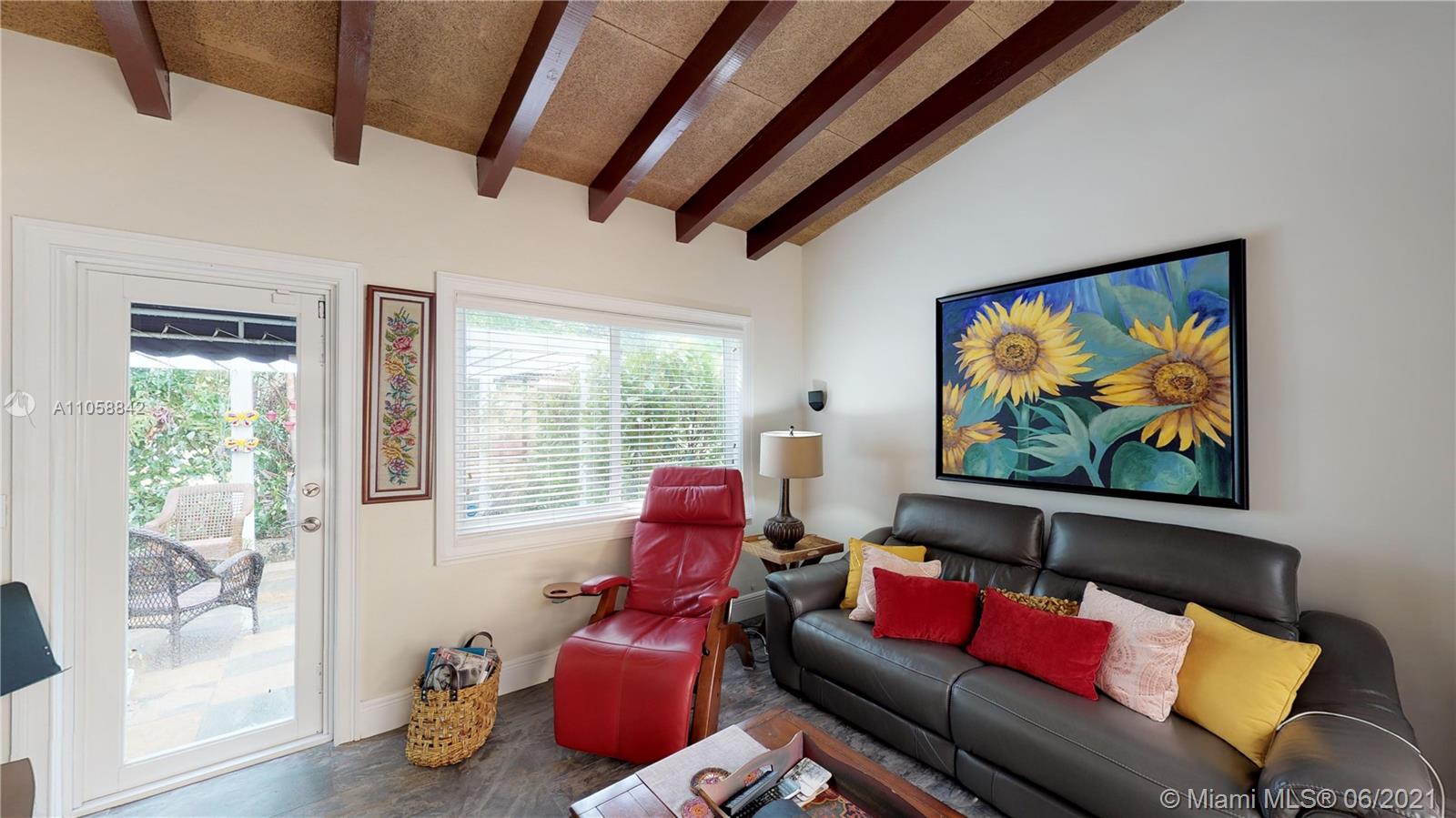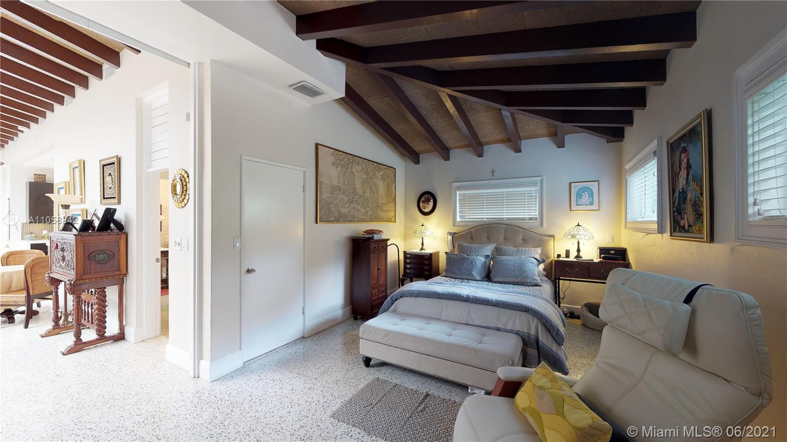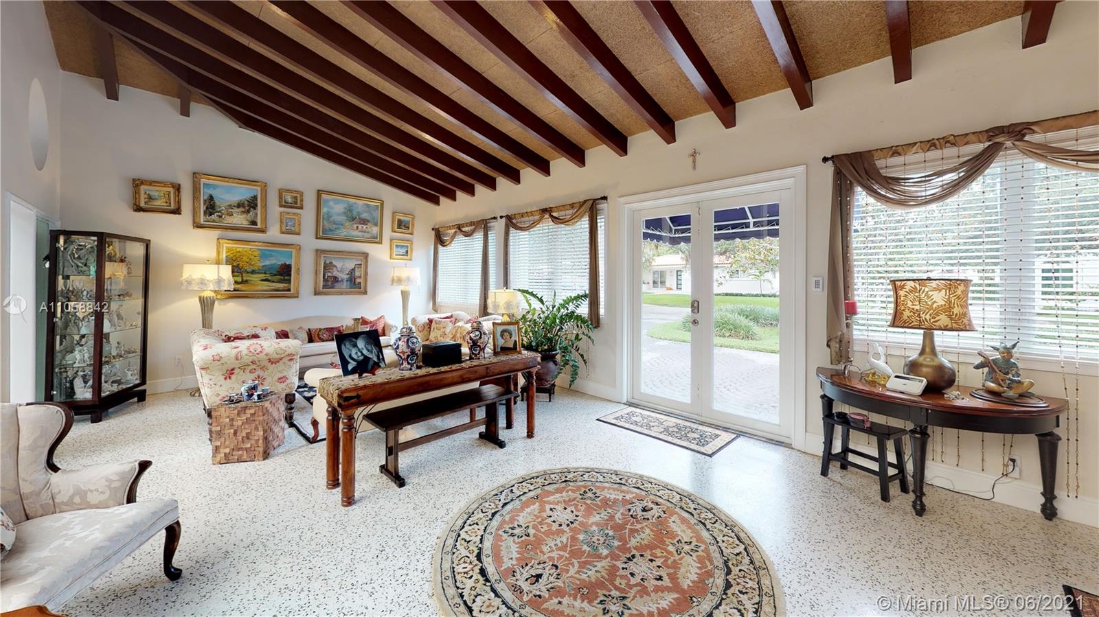 Unique Coral Gables home, Designed by Mid Century modern architect Tony Sherman, the house surrounds a 20 x 25 Zen room with an in-ground fountain. Overall under air as per appraiser is 3683 SQ FT, 3 bedrooms, 2 bath plus converted 4th bedroom and bath. 1 Car garage, large circular driveway, art deco curved glass and stain glass windows, 10 ft. barn doors, impact windows and doors, custom made wood kitchen cabinet, laundry room and exposed beam ceiling. House is on a Coral Gables double lot 100x100 in the Country Club Estate neighborhood. Walking distant to Fairchild Elementary