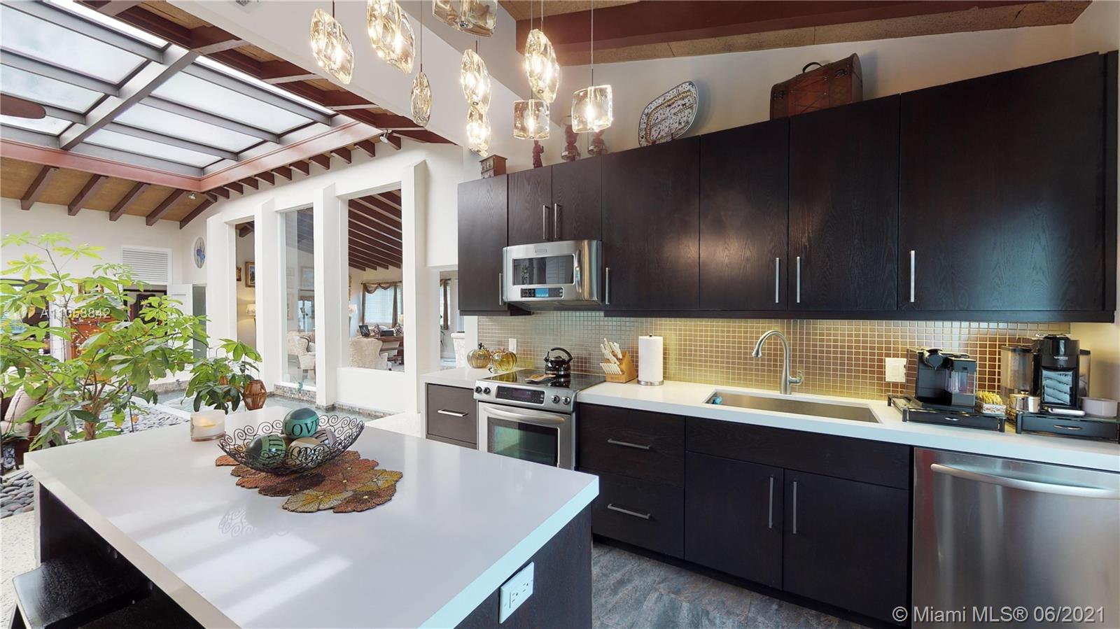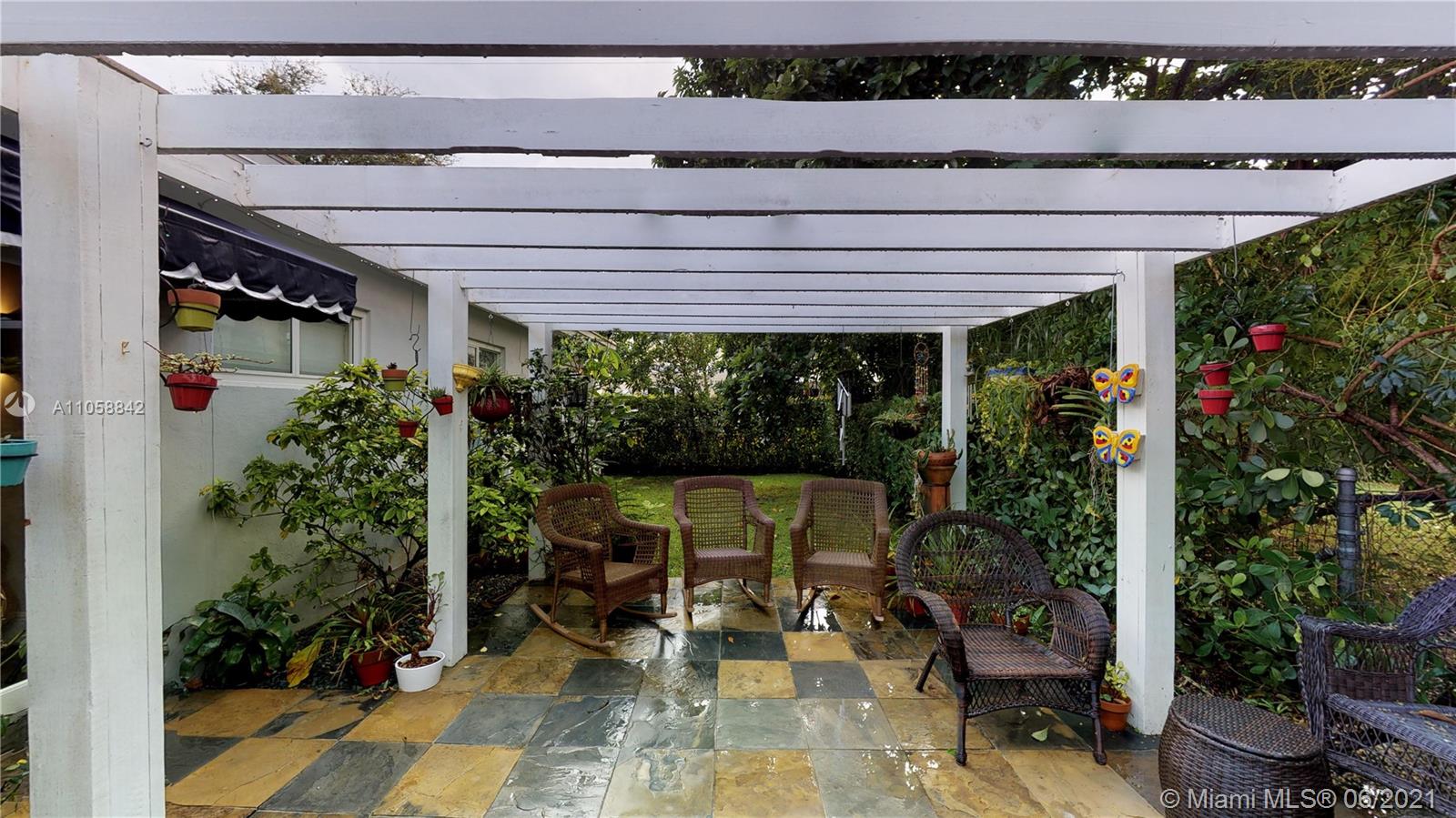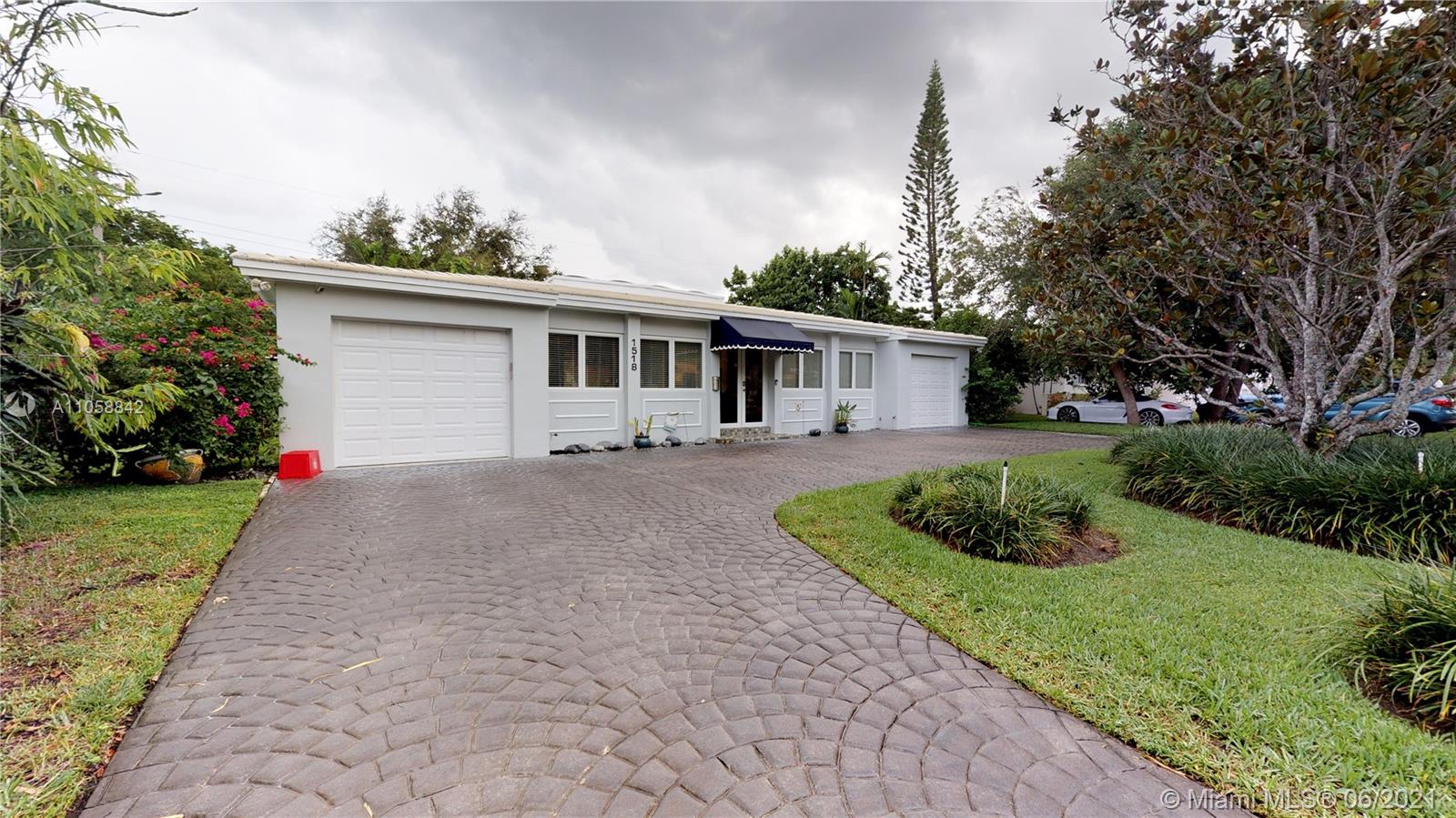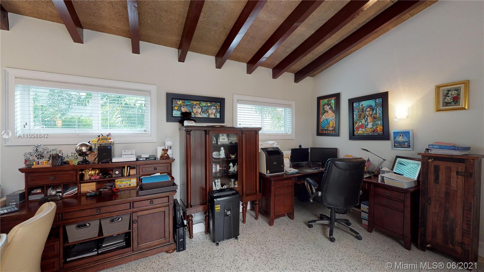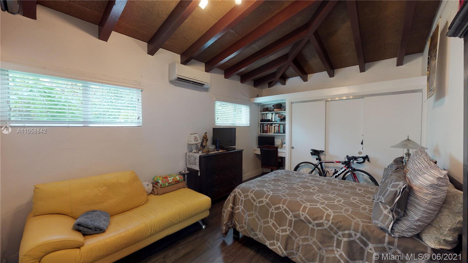 Unique Coral Gables home, Designed by Mid Century modern architect Tony Sherman, the house surrounds a 20 x 25 Zen room with an in-ground fountain. Overall under air as per appraiser is 3683 SQ FT, 3 bedrooms, 2 bath plus converted 4th bedroom and bath. 1 Car garage, large circular driveway, art deco curved glass and stain glass windows, 10 ft. barn doors, impact windows and doors, custom made wood kitchen cabinet, laundry room and exposed beam ceiling. House is on a Coral Gables double lot 100x100 in the Country Club Estate neighborhood. Walking distant to Fairchild Elementary