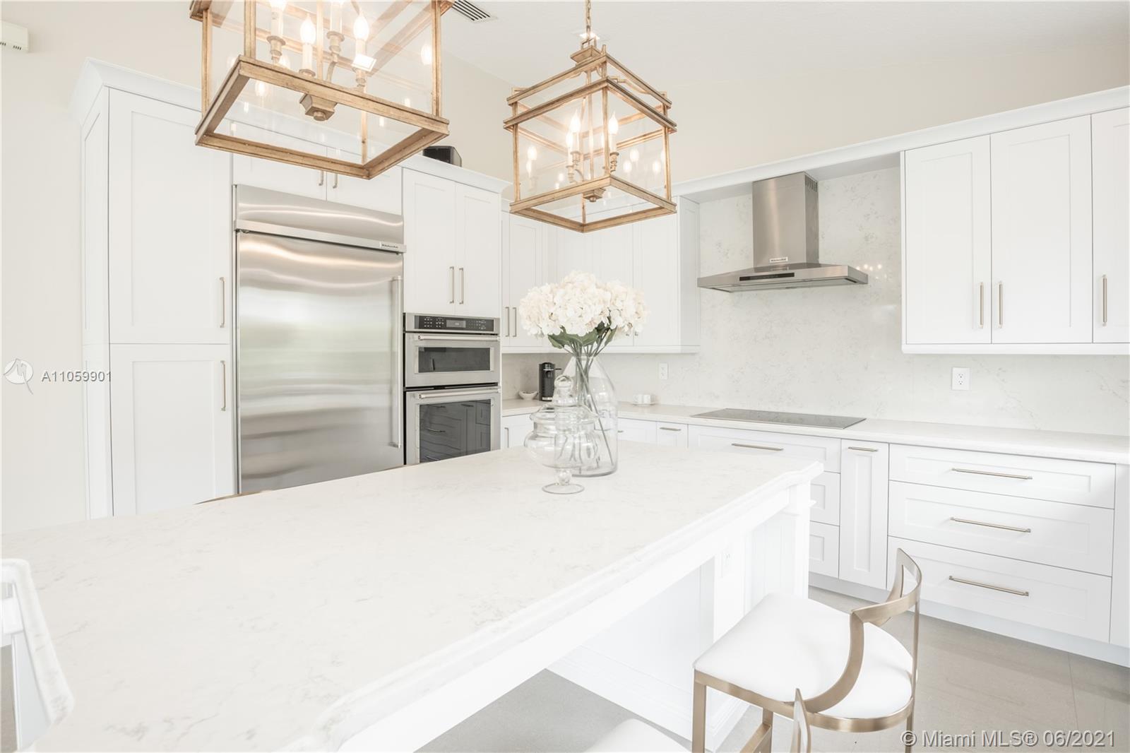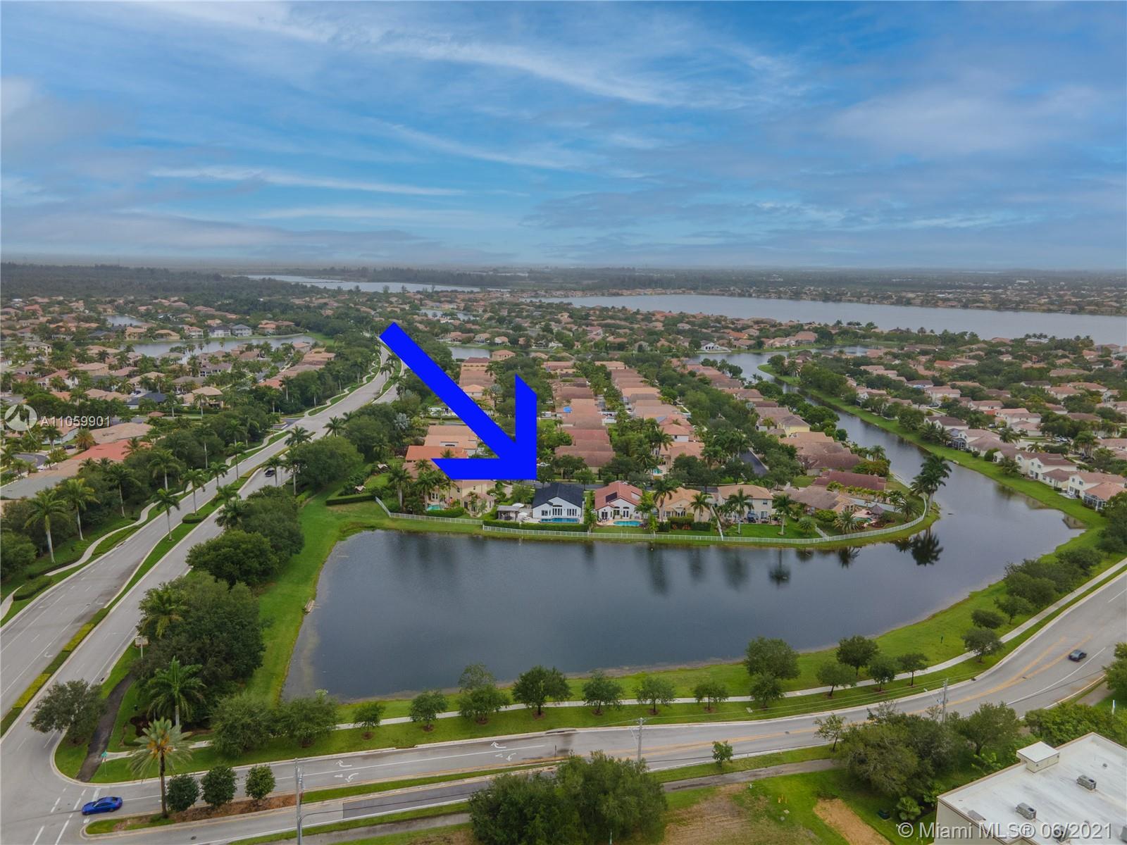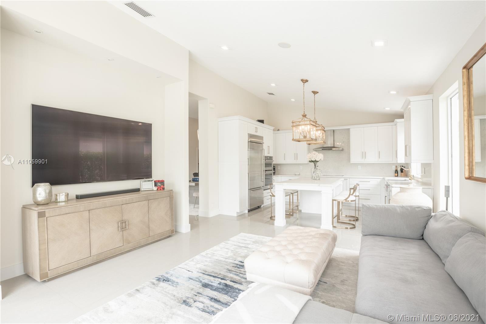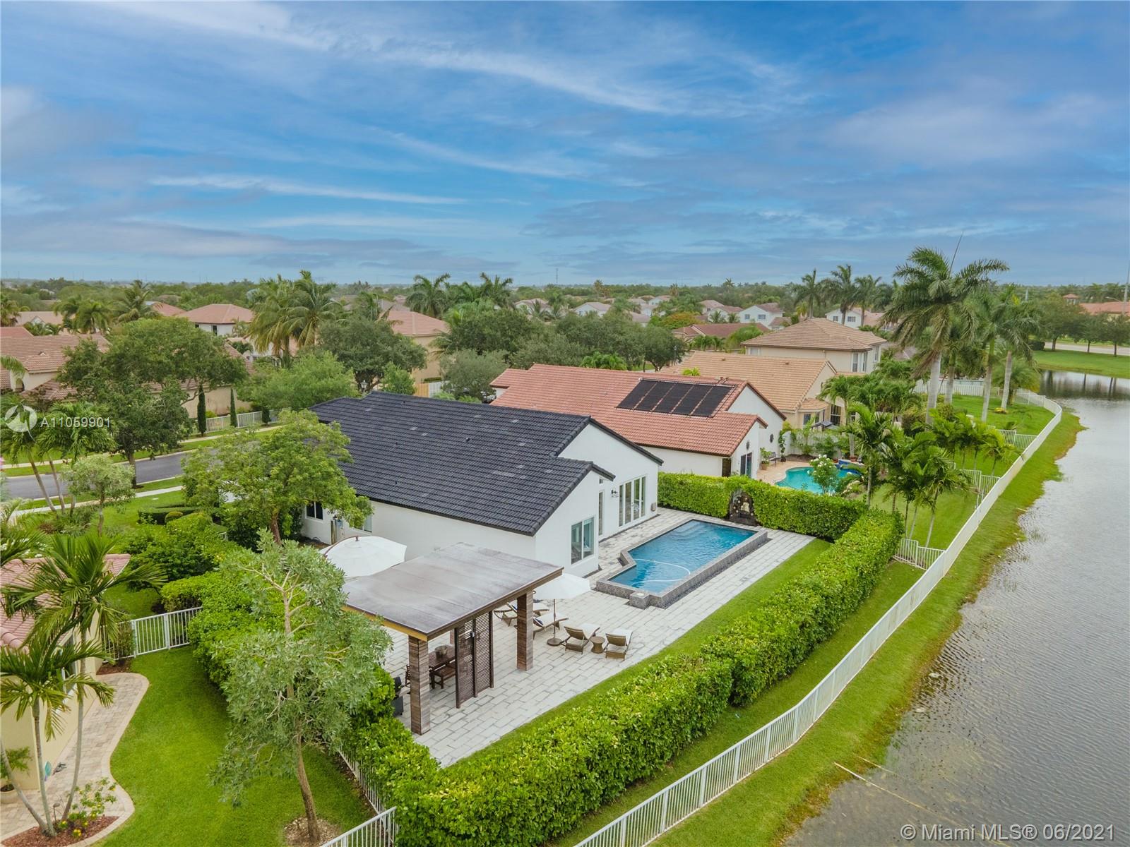 This luxurious, modern, dream home features 4 bed/3 bath, interior laundry room & a 2 car garage. The backyard features a pergola witha gorgeous custom salt water pool with fountains overlooking the lake! Your future home features a Pelican filtration water system delivering chlorine/chloramine-free water. The spa-like master bath features a deep standalone tub, double sink vanity & a large glass enclosed shower. The spacious kitchen includes KitchenAid built in SS appliances & an oversized quartz island perfect for entertaining. Other luxurious details include: European custom doors, custom California closets, exquisite 24x24 porcelain tile, elegant chandeliers, Eco hurricane impact windows & french doors, new AC, water heater, VacuFlo central vacuum & elegant landscaping to name a few.
