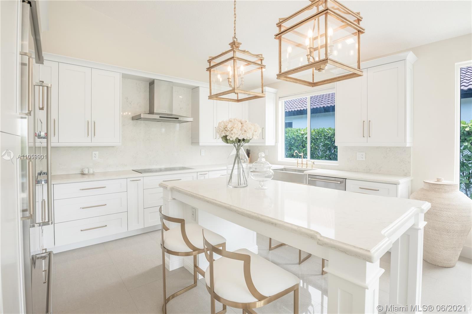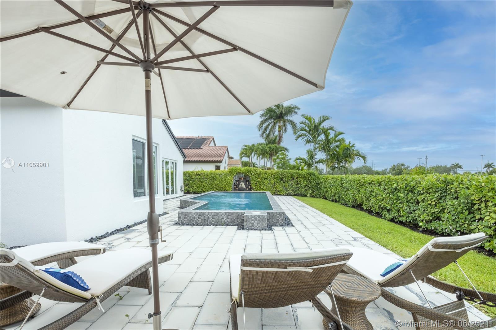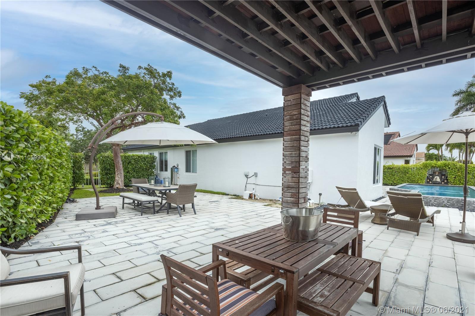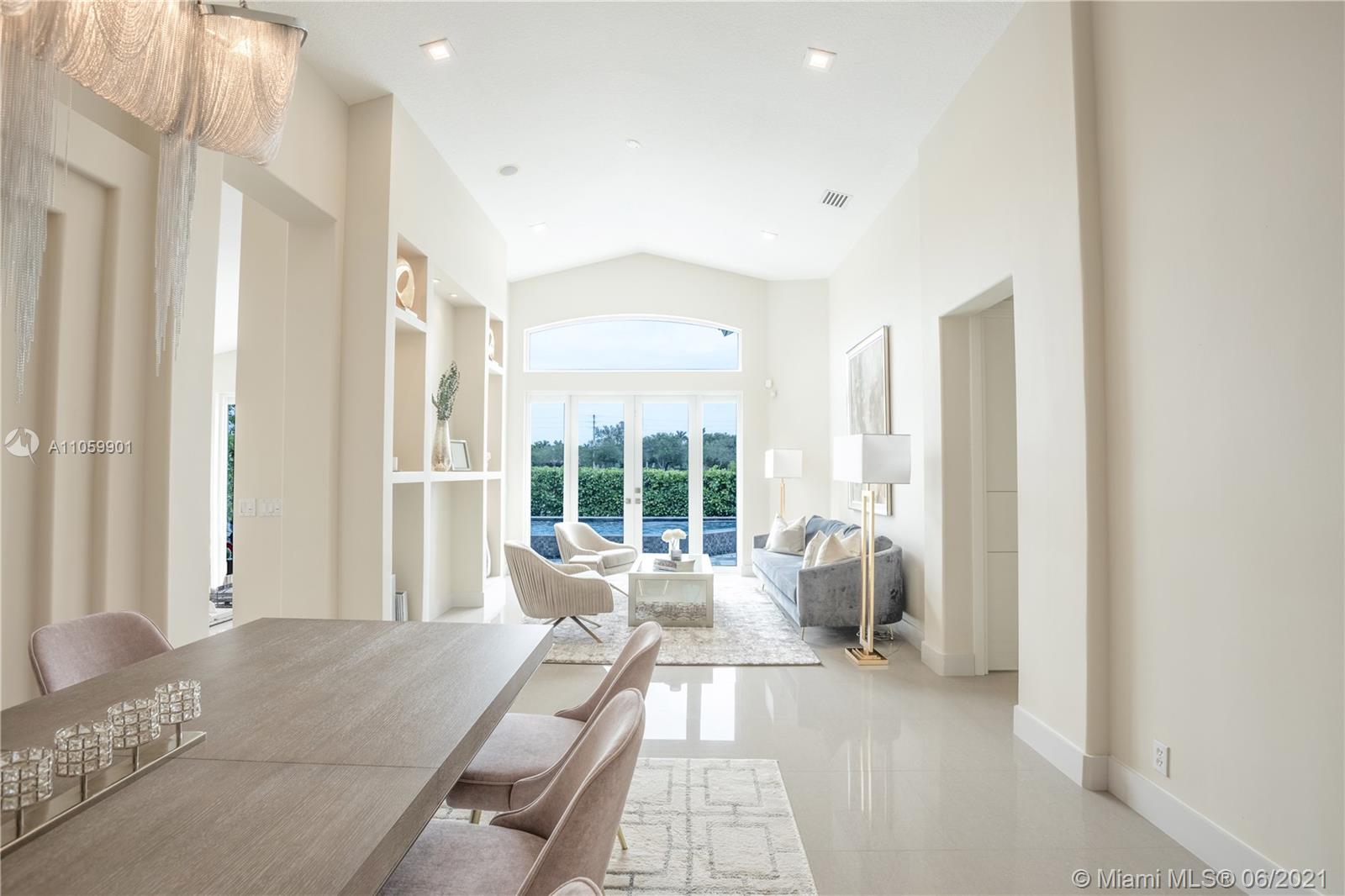 This luxurious, modern, dream home features 4 bed/3 bath, interior laundry room & a 2 car garage. The backyard features a pergola witha gorgeous custom salt water pool with fountains overlooking the lake! Your future home features a Pelican filtration water system delivering chlorine/chloramine-free water. The spa-like master bath features a deep standalone tub, double sink vanity & a large glass enclosed shower. The spacious kitchen includes KitchenAid built in SS appliances & an oversized quartz island perfect for entertaining. Other luxurious details include: European custom doors, custom California closets, exquisite 24x24 porcelain tile, elegant chandeliers, Eco hurricane impact windows & french doors, new AC, water heater, VacuFlo central vacuum & elegant landscaping to name a few.
