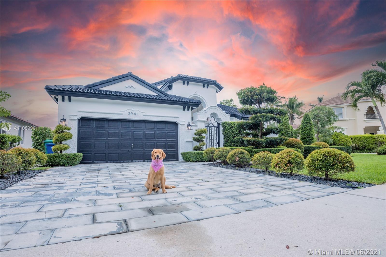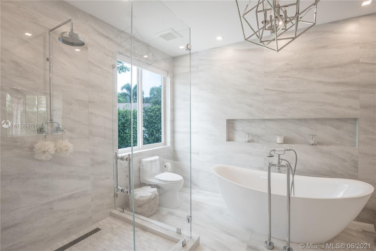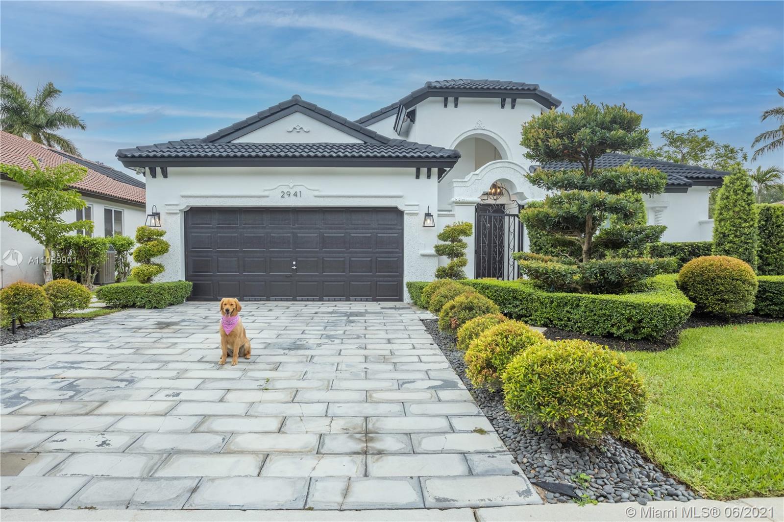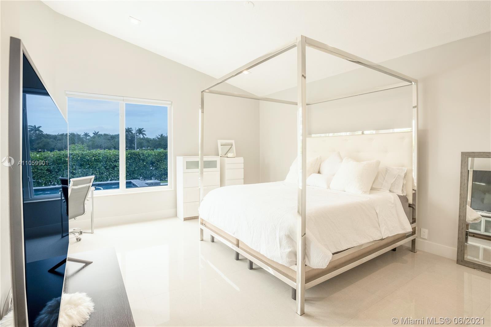 This luxurious, modern, dream home features 4 bed/3 bath, interior laundry room & a 2 car garage. The backyard features a pergola witha gorgeous custom salt water pool with fountains overlooking the lake! Your future home features a Pelican filtration water system delivering chlorine/chloramine-free water. The spa-like master bath features a deep standalone tub, double sink vanity & a large glass enclosed shower. The spacious kitchen includes KitchenAid built in SS appliances & an oversized quartz island perfect for entertaining. Other luxurious details include: European custom doors, custom California closets, exquisite 24x24 porcelain tile, elegant chandeliers, Eco hurricane impact windows & french doors, new AC, water heater, VacuFlo central vacuum & elegant landscaping to name a few.