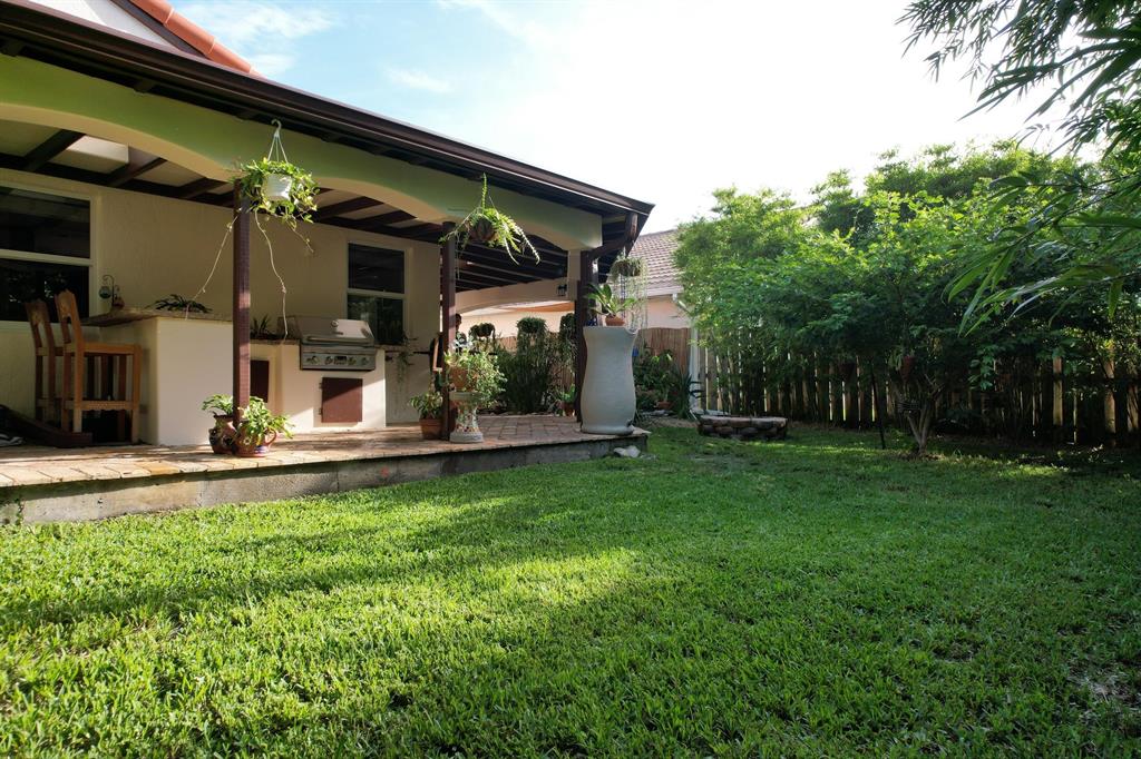 Come see this charming and immaculate home located in one of the most desirable neighborhoods in Davie. The home offers a spacious 2098 sq. ft. of living space. 3B and 3.5B with an extra room/office, which could be used as a fourth bedroom. Bright and open floor plan with trays ceilings and crown molding throughout with plenty of natural light. First floor has an expansive master bedroom with french doors leading out to the back yard. The home also features a beautifully updated kitchen with granite countertops and large island, perfect for entertaining. Kitchen looks out to the tropical oasis yard with an exotic koi pond and private bamboo hedges as well as an outdoor built-in grill area. First floor has all impact windows and doors, second floor has accordion shutters.Koi fish not convey