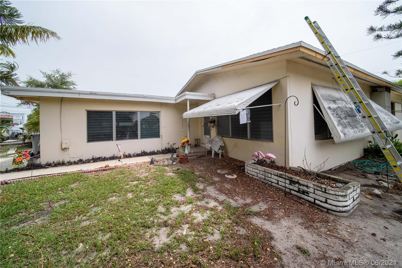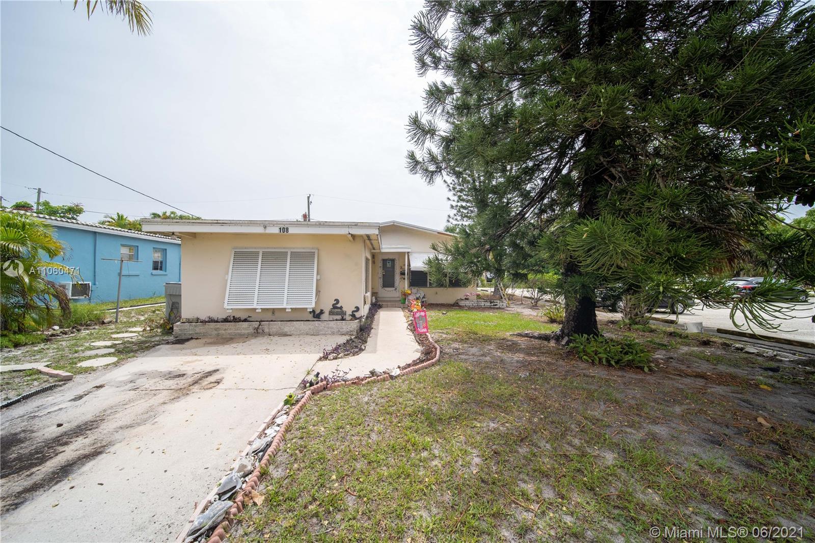 Nested just 1 mile from the beach this 2 bedroom 1 bathroom offers ample living area, patio, large from and back yard and room for a 3rd bedroom or office. This is the perfect opportunity to invest in the only single-family home available for a spectacular price. Zoning permits up to a 5 units Multifamily or the chance to open a business. This property is only a 10-minute drive to the famous Pompano Beach Pier, walking instance to schools and lots of shopping. The main roof is one week old. Complete inspection report is available. Scheduled tours with POF ONLY. For financed offers, please contact the listing agent first. All information including that produced by the Sellers or Listing Company are subject to errors, omissions or changes without notice and should be independently verified