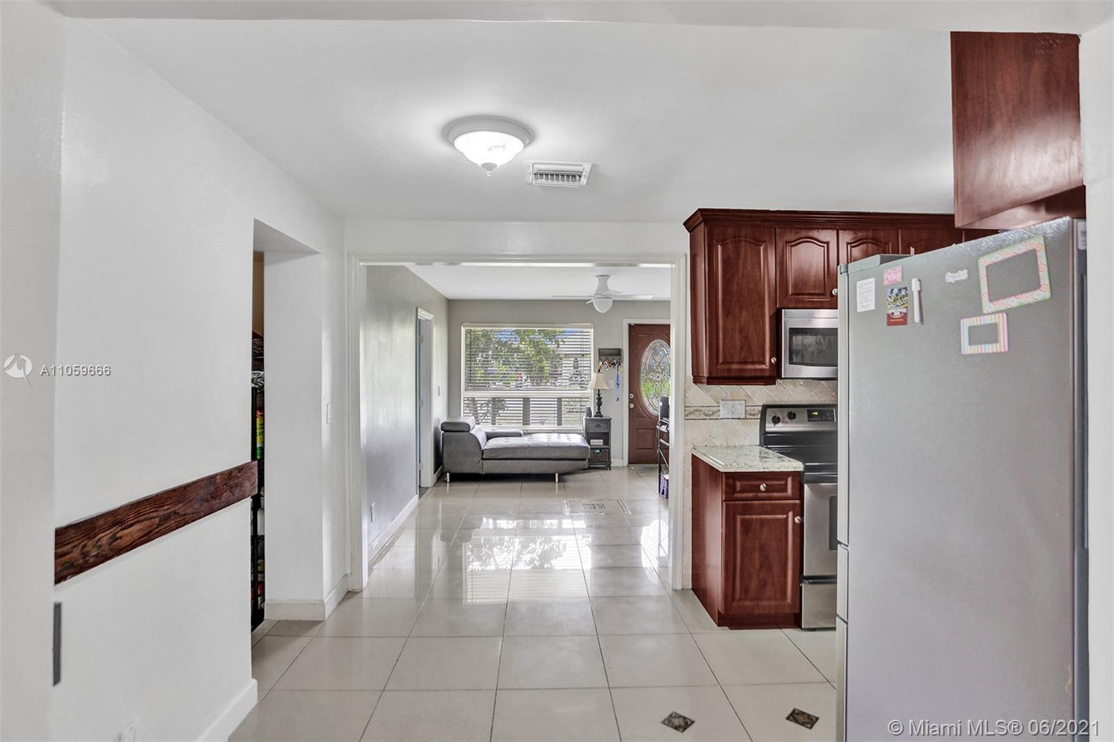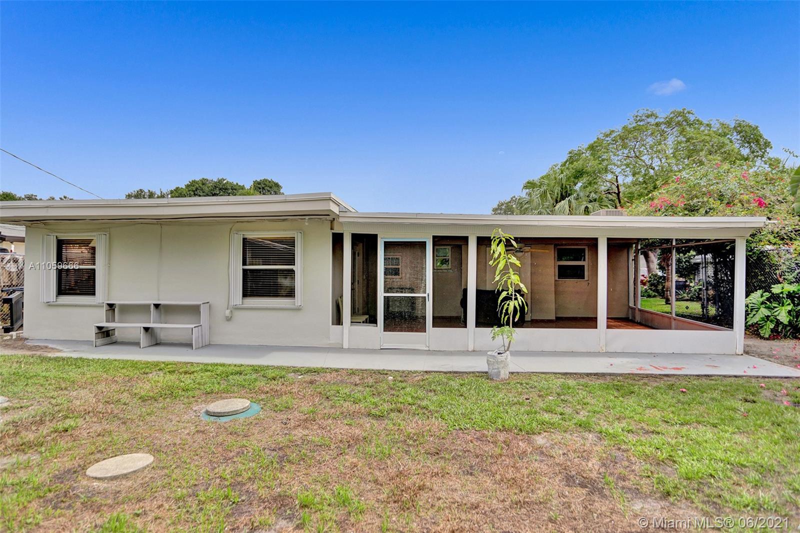 Dont miss out on this beautiful, spacious and well maintained 3/2 with Master suite in sought after city of Hollywood. His and Hers closets. Newer kitchen with ss appliances, granite counters in kitchen and bathrooms. Tile and wood floors throughout. Large Florida room w/french doors, oversized outdoor screened & tiled patio overlooking private fenced-in yard with tropical trees. Impact windows, newer front load washer/dryer. Large well-built outdoor shed. Septic tank. Great location - walking distance to shopping, gym, major roadways for transportation. Minutes from Guitar Hardrock Hotel & Casino. Come see this beautiful home and fall in love! Showings Monday, Tuesday Call/text to make appt for these days and times. Open House by appt Saturday July 17, 12-2pm