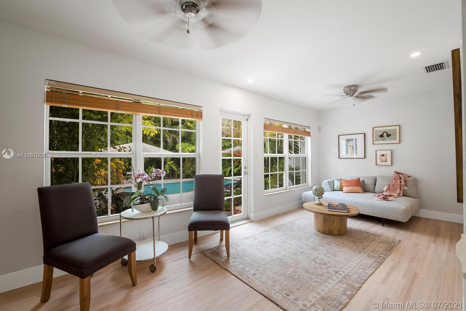 Your own personal retreat in this beautifully updated flowing home with spectacular pool, entertainment space and lush rear gardens. So much room to relax, play or entertain! Spacious living with signature fireplace flows to separate dining and sunny media room overlooking glistening pool waters and tropical gardens. You’ll love the extended eat-in kitchen with new appliances plus large laundry-prep room. Bright and airy throughout with refinished light oak floors, sleek updated baths and spacious bedrooms, each with designer custom closets. Welcoming front porch, new roof, impact windows-doors and a one car garage, all in non-flood zone! You’ll feel like you’re away on vacation, yet just a block to all the cool downtown Miami Shores restaurants and coffee shops. Property is owner agent