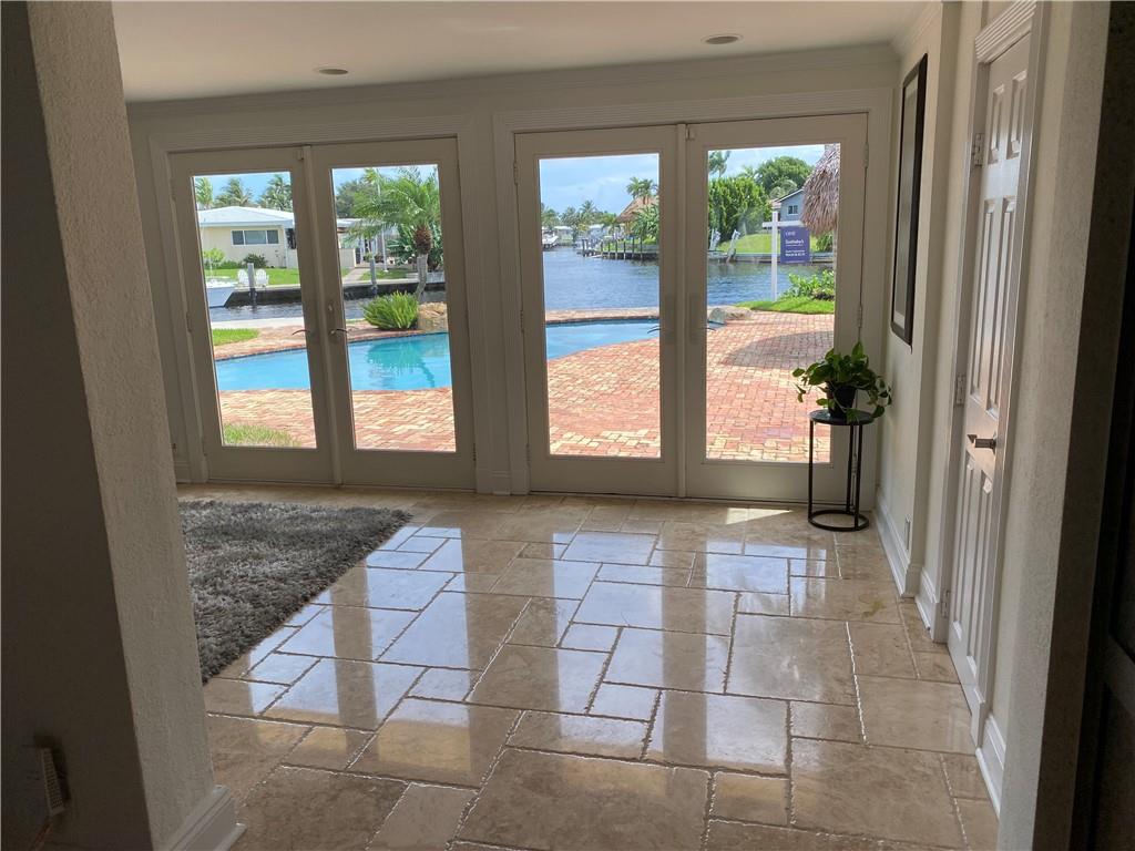 Substantially remodeled 3 bedroom and 2 bath and salt water pool.Gourmet kitchen, with top of the line appliances.197 feet on the water, all new concrete dock and seawall, easy access to the ocean, new bridge being raised, so you can get large boats under the bridge. If you like to entertain you will love the outdoor space.Tiki bar, with electric and water. Built in natural gas BBQ. All new landscaping and fence. Beautiful chicago brick patio, This home is at the end of a cul-de-sac , Great location.This is a must see.