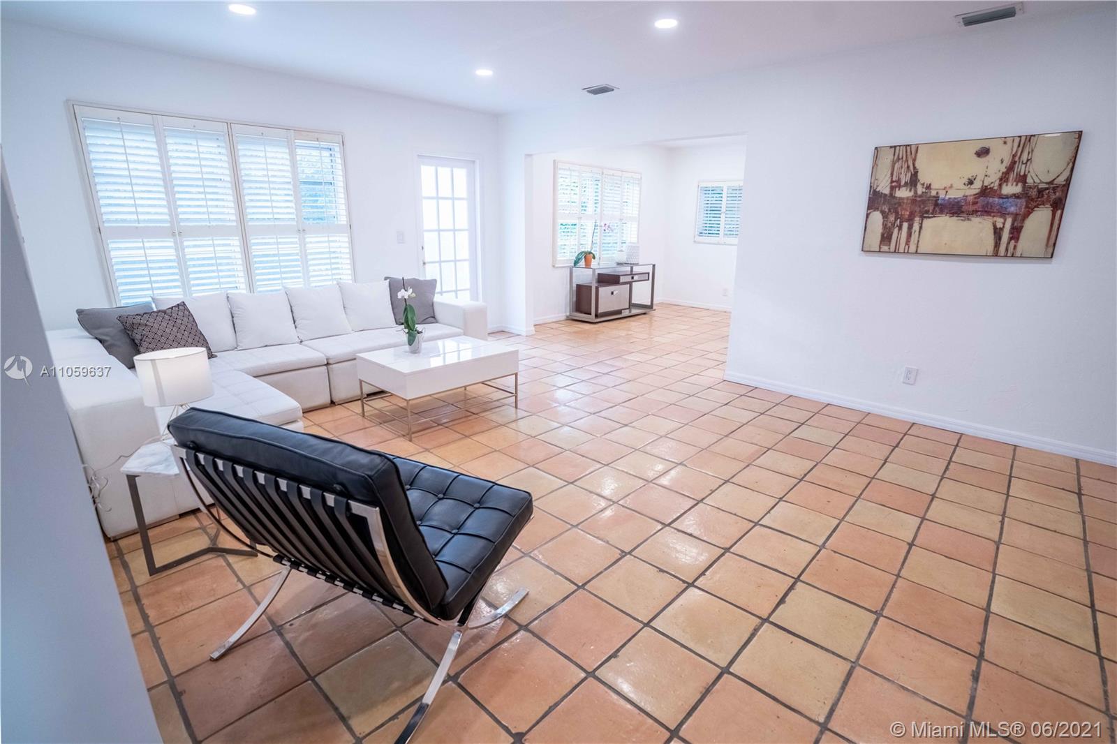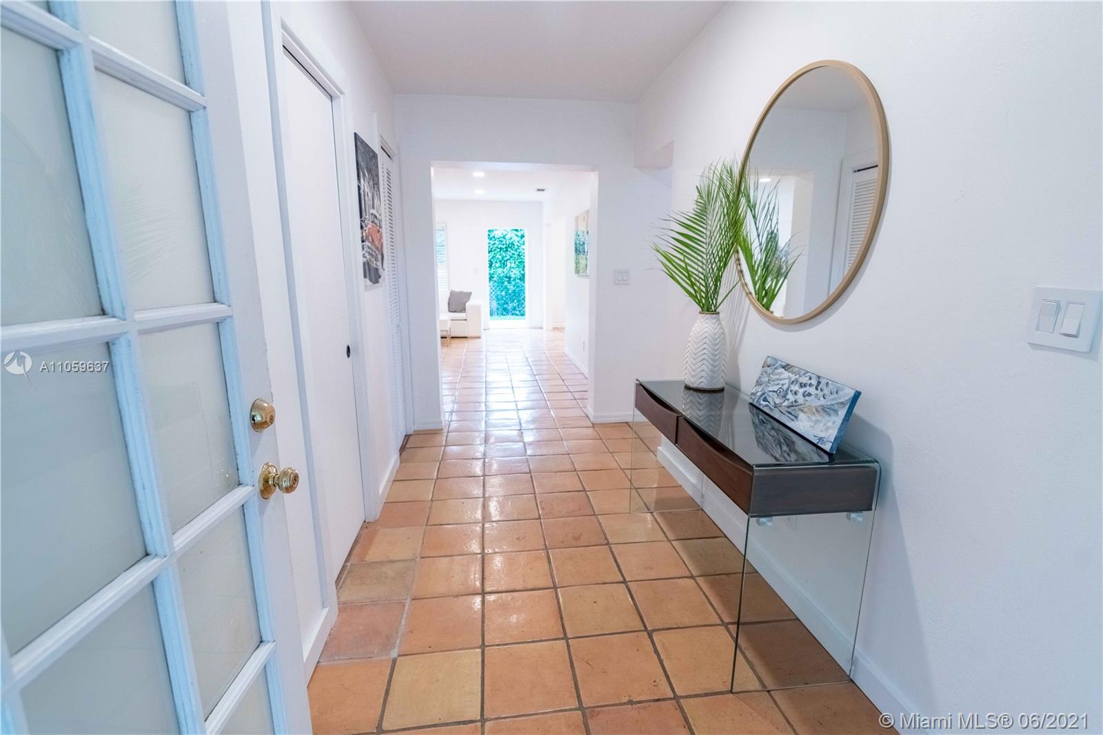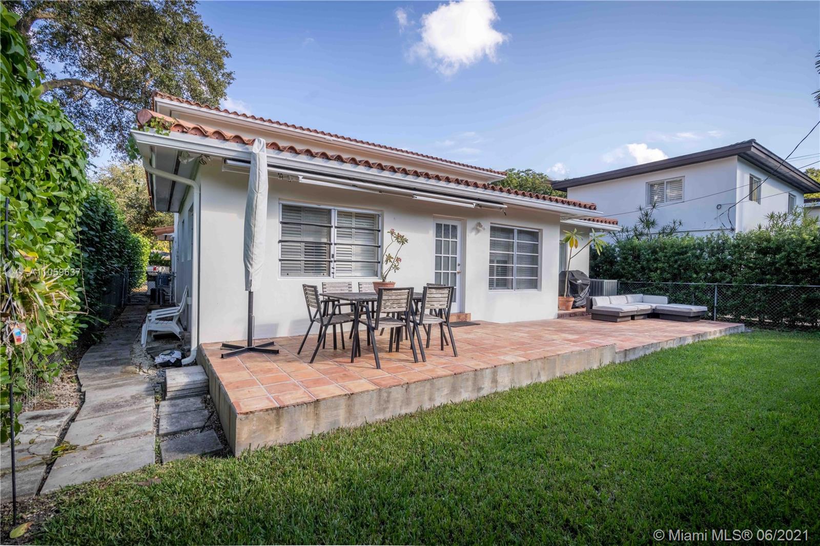 Prime location in South Gables! Nestled on a quiet tree lined street between Maynada and Cocoplum Circle, this beautiful 3bd/3bath 2 Story home is truly a great find. Home boasts a great open layout that has endless possibilities. Move in as is or renovate to make your own. Ground flr has 1 ample sized bedroom with polished Terrazzo & a tastefully updated full guest bathroom. Mexican tile in the common areas and upgraded European Oak wood floors on stairs and second story. Large upstairs Master w/ spa and walk in closet. Second bedroom upstairs has with ensuite bath. Updated electrical lighting and large windows throughout the house bring in lots of natural light. Best priced house per sq ft in the area for homes under 1M dollars. Located in #1 rated Sunset Elementary School District.
