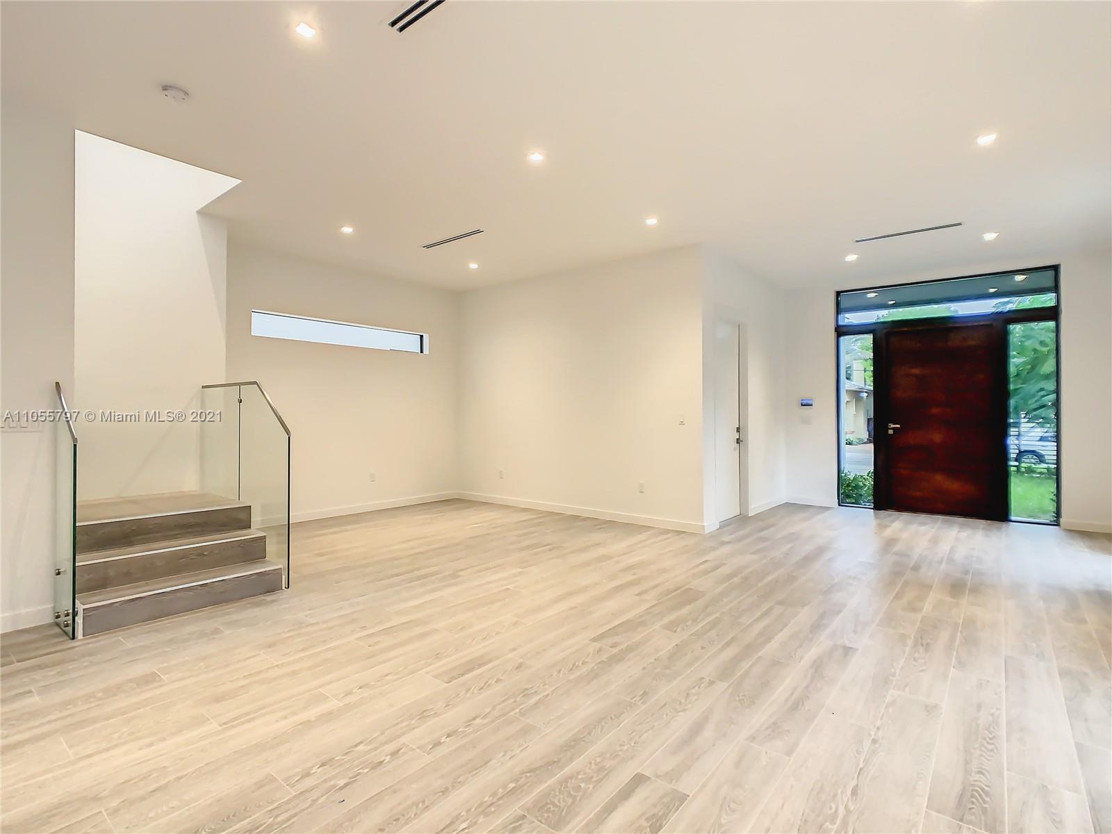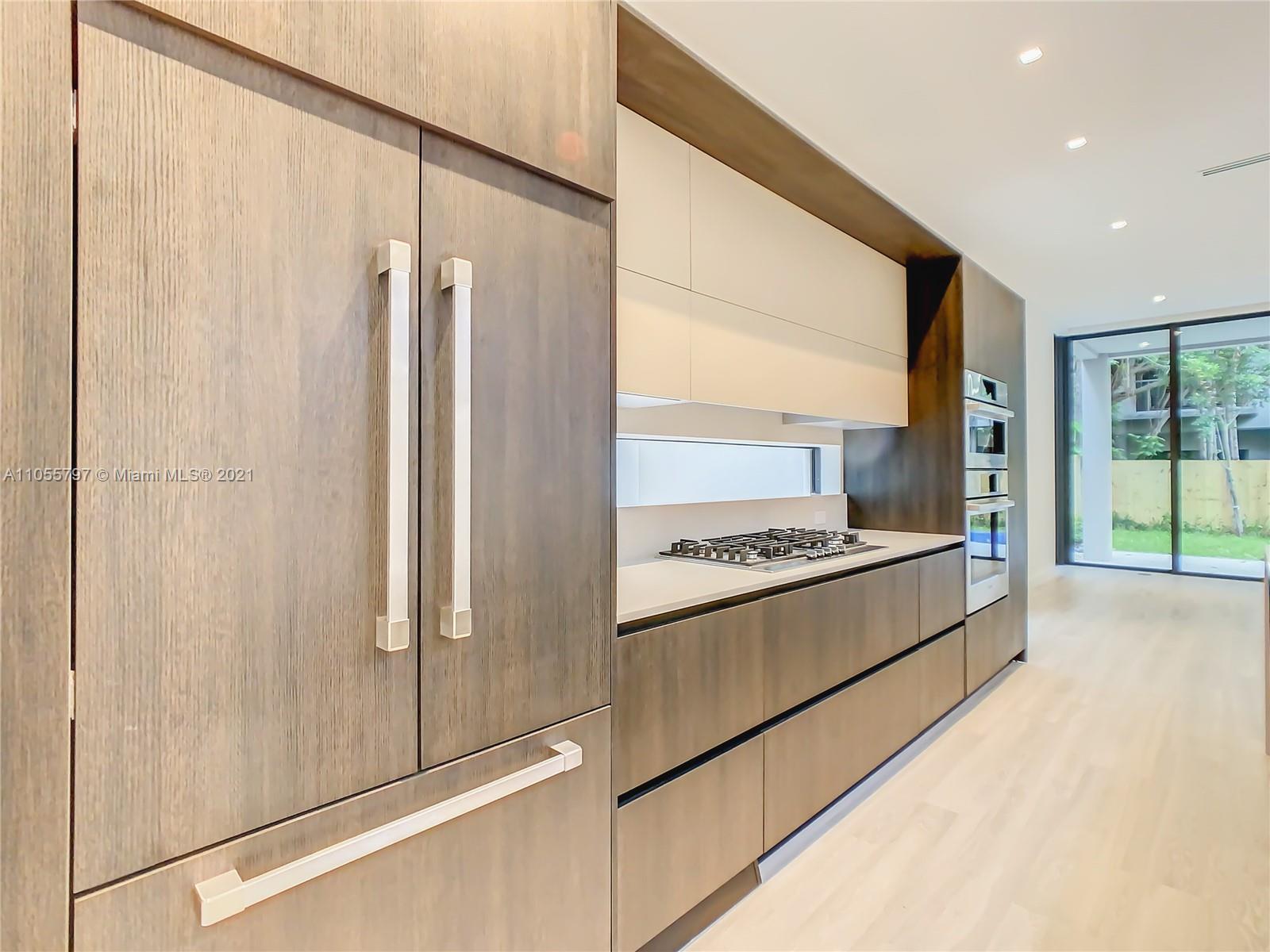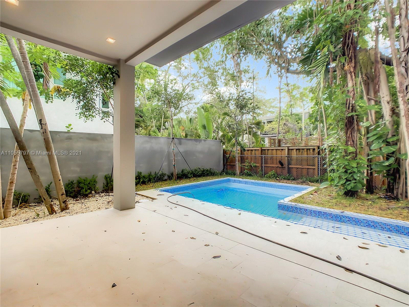 Back on Market! - Last One Available - One of 2 Custom townhouses perfectly located on a low traffic street in Coconut Grove. Walking distance to town center. Custom designed Italian kitchen cabinetry and quartz countertops with top of the line appliance package. Floor to ceiling glass sliding doors allows the light to flow through the home with views to the rear yard with porcelain deck, swimming pool and summer kitchen area shaded by a specimen Stranger Fig tree. Porcelain wood grain tile throughout the home and interior glass railings on staircase leading to spacious bedrooms on the second floor. The Master Bedroom has a terrace and oversized closets. Designer plumbing fixtures and solid wood doors are just some of the many impeccable details throughout the home. Private pool.