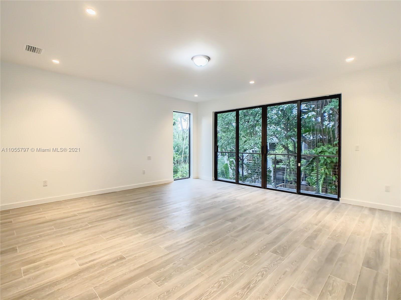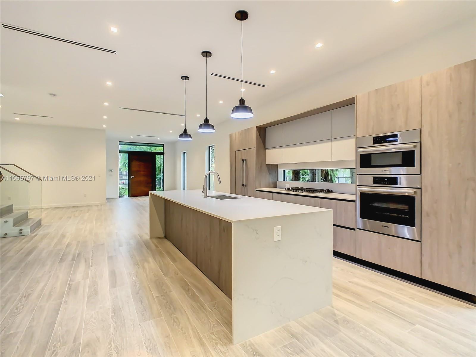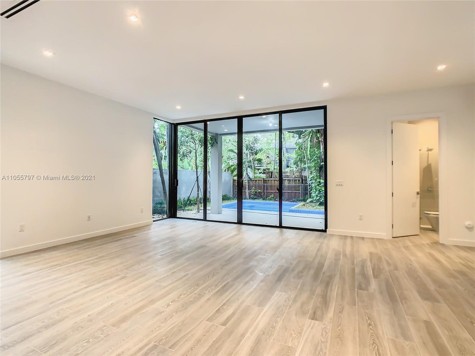 Back on Market! - Last One Available - One of 2 Custom townhouses perfectly located on a low traffic street in Coconut Grove. Walking distance to town center. Custom designed Italian kitchen cabinetry and quartz countertops with top of the line appliance package. Floor to ceiling glass sliding doors allows the light to flow through the home with views to the rear yard with porcelain deck, swimming pool and summer kitchen area shaded by a specimen Stranger Fig tree. Porcelain wood grain tile throughout the home and interior glass railings on staircase leading to spacious bedrooms on the second floor. The Master Bedroom has a terrace and oversized closets. Designer plumbing fixtures and solid wood doors are just some of the many impeccable details throughout the home. Private pool.