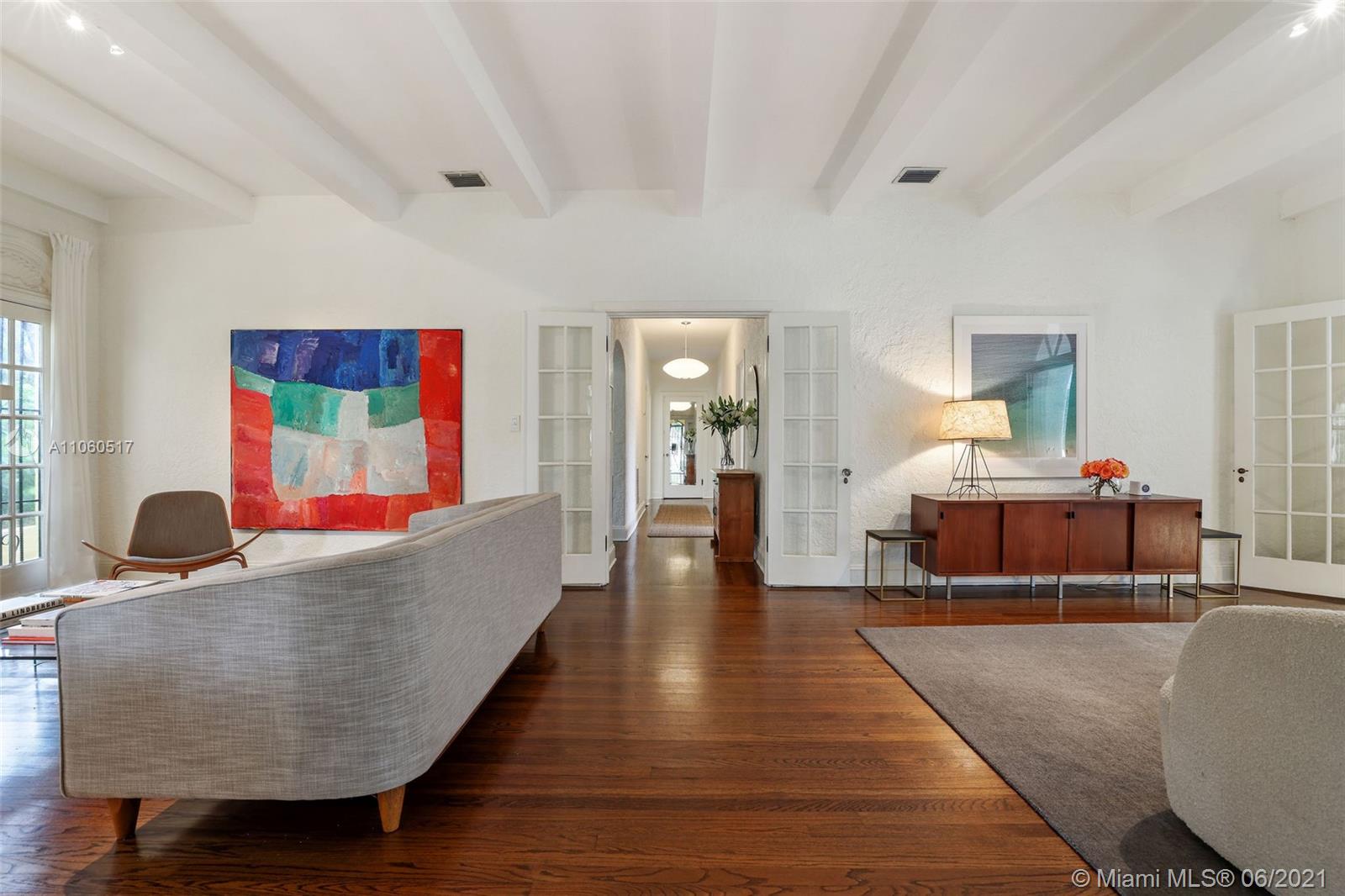 Stunning Old Spanish home with true charm on a beautiful tree lined street. Tastefully remodeled with modern touches that blend with the warmth of its original design, with beautiful arches, volume ceilings, and gorgeous hardwood flooring. Large screened porch provides the perfect outdoor family room. The living room is grand with a charming fireplace & beautiful casement windows, opening to a sun-filled reading room or home office. A separate dining room enters into a spacious kitchen with pantry. Bathrooms were recently remodeled. Spacious garage and partial impact glass windows. Located in one of the most desired areas in Coral Gables and walking distance to restaurants, parks & schools.