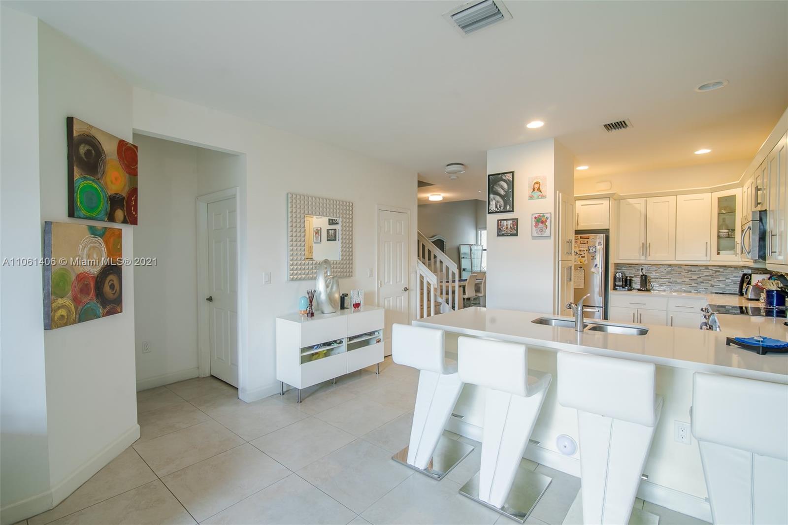 PRICE IMPROVEMENT* Townhouse for sale in Doral cay: Featuring 3 bedrooms 3 full bathrooms. One bedroom with full bathroom downstairs, relaxing lake view, tons of natural light. Close to best schools in the area, shopping centers, and all major highways. Development has many amenities, and the unit has ceramic tiles downstairs and carpets upstairs. Upgrades in the kitchen, with stainless steel appliances, wine cooler, and quartz countertop. beautiful patio, Large closets throughout the house, and many extra storage spaces. The clubhouse has a fitness center, game room, barbecue area, pool, and hot tub. Located in the heart of Doral, surrounded by parks, shops, entertainment, A+ schools.
