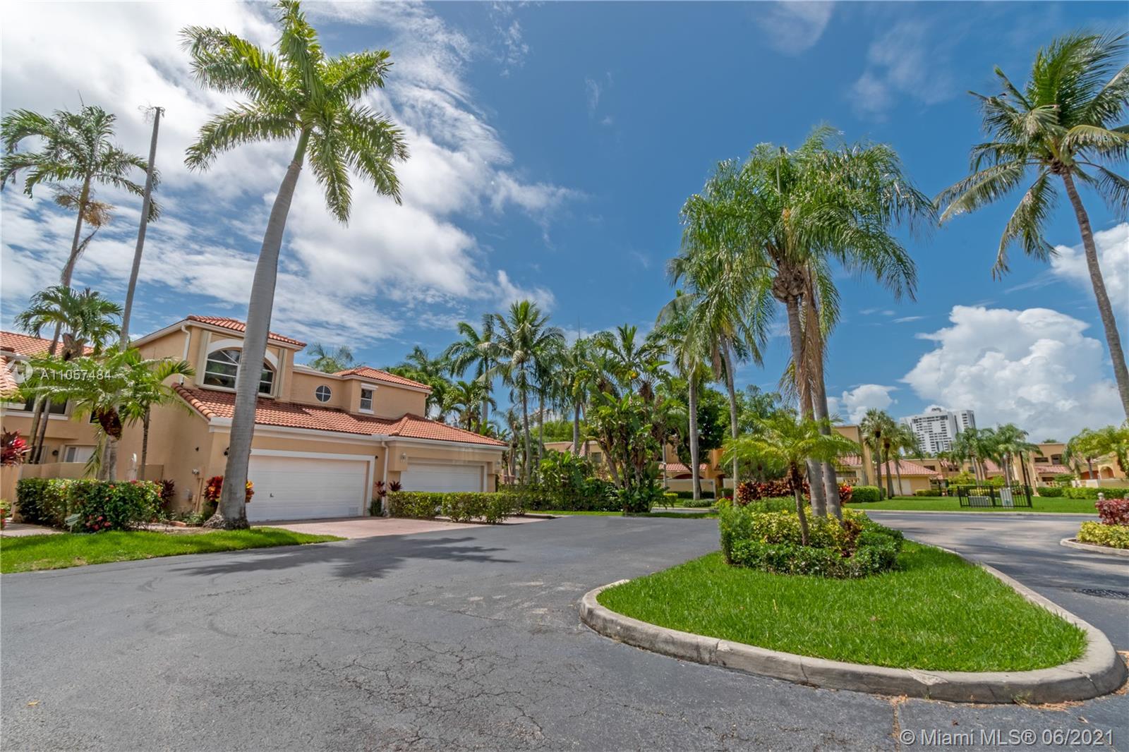 Tastefully renovated town-home in the heart of Aventura! Spacious 3 bedrooms, 2 full bathrooms upstairs and one powder room/half bath downstairs- completely turn key with spectacular charm. Updated with new bathrooms, appliances, hurricane impact windows, shutters, and artfully designed throughout. Lush garden views provide complete privacy. Unique to only 3 townhomes in this community, is an offset entrance with a barrier from the main road for extra safety and additional parking. Very secure, gated community that is walking distance to an A+ rated school (Don Soffer Aventura High school) , several plazas, Aventura mall, gym, dog park, synagogues, etc.