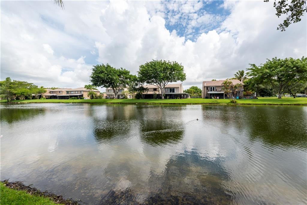Relax on your deck and enjoy the peaceful water view at this fabulous townhouse with a perfect Davie location. Updated kitchen, large bedrooms, great layout with open floor plan and outdoor areas made to enjoy. Offers both a screened porch and a built out deck for outdoor use, in addition to a front courtyard. New roof and accordion hurricane shutters too! Centrally located but tucked away this community offers so much: gated entrance, pool and clubhouse, dog park, free storage for boats/trailers/RV’s. Also has horse stalls for rent with riding rings. Low hoa, 2 parking spots right in front of unit, just a great place to call home! Minutes to Publix, Starbucks, shopping and dining; close to colleges, and convenient to highways & airport.