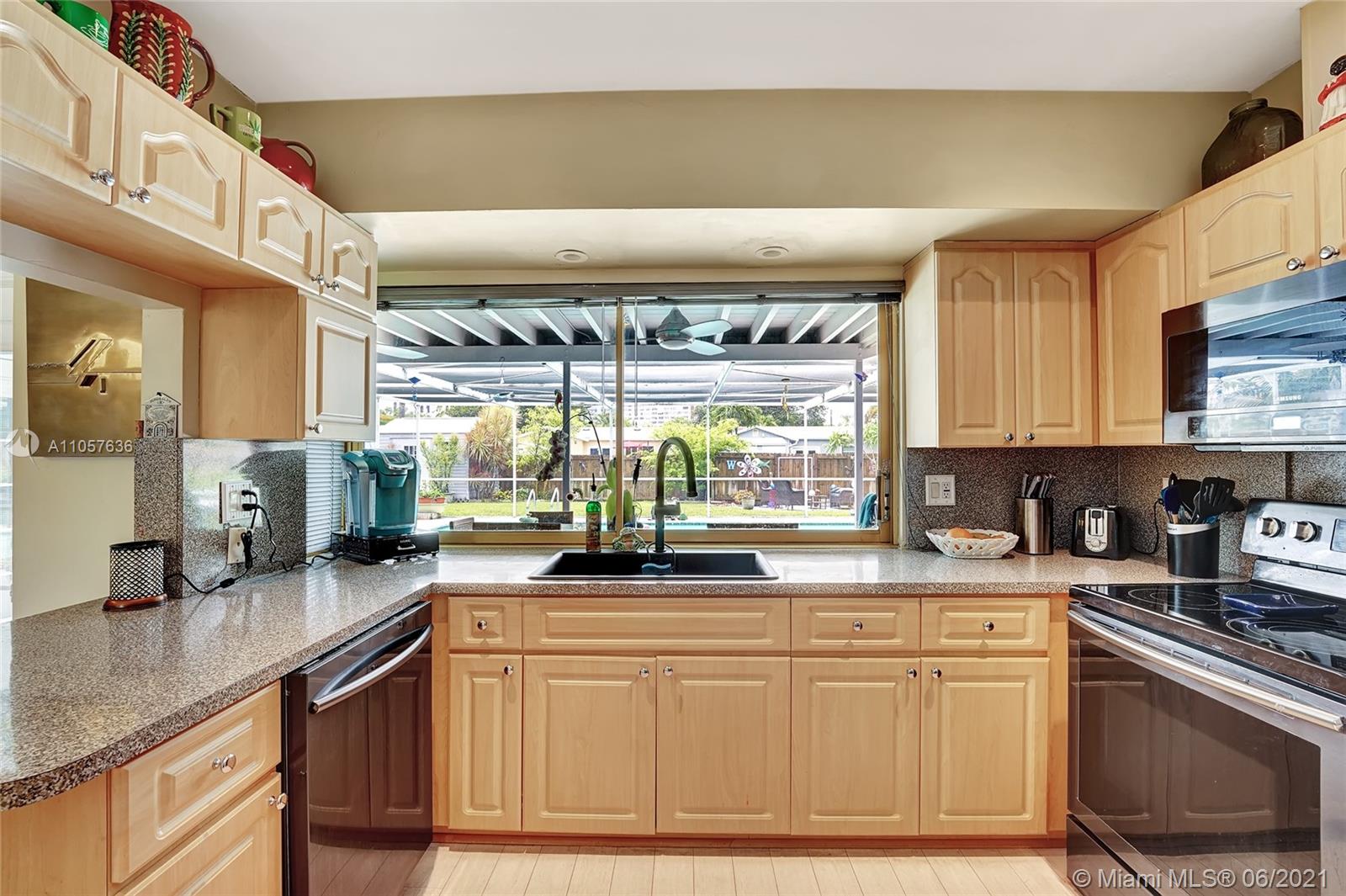 Are you looking for a tropical tranquil home that is great for entertaining & less than 5 miles to Hollywood Beach Then look no further, this 4 Bedroom 2 Bathroom home sits on a spacious 7,673 fully fenced sqft lot. Enter through your foyer & your greeted by the open flowing floor plan and captivating views of the pool. The large kitchen is thoughtfully designed w/ built-in pantry & large pass through window w/ pool bar seating. Triple split floor plan. Spacious bedrooms. Upgraded bamboo flooring throughout. Master suite features walk-in closet w/ built-ins & en-suite cabana bath. French doors lead you from the living space to your screened pool deck w/ covered patio & plenty of yard pass the pool to enjoy! Outdoor storage shed. Impact windows/doors. Large circular driveway & much more!