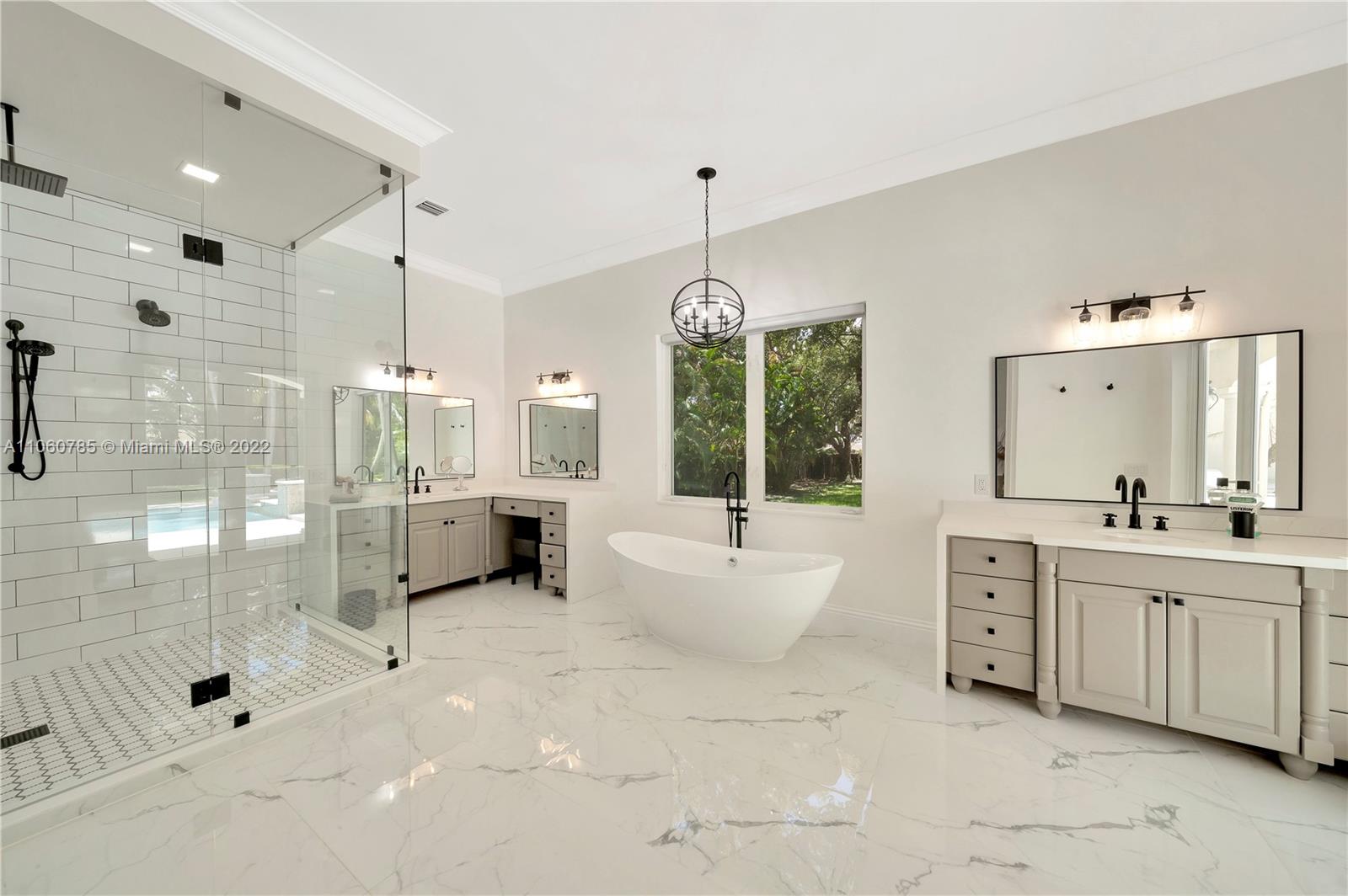 Stunning 1-story home recently remodeled in NE Pinecrest! This home sits on over 1 acre with a half court for the NBA enthusiast. Plenty of privacy with hedges surrounding the property and electric gate at entrance. 3-car garage, 6 bedrooms on one side of the home and an additional service/guest room on the opposite side, laundry room, remodeled kitchen and bathrooms, etc. The perfect home for a large family that wants to be minutes from the best schools Miami has to offer.