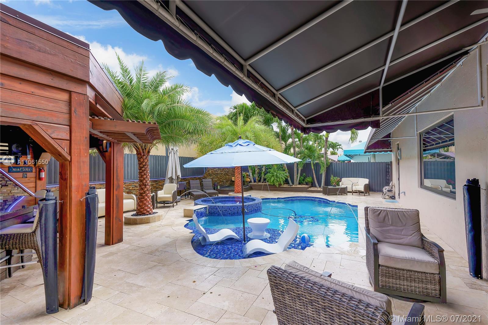 A beautiful 5 rooms 5 bathrooms single family house with a pool on a prestigious neighborhood. Built in 2003, this property has recently been remodeled. This property has 2 car garage with plenty space for guests parking. One room and a full bath downstairs, The backyard has an amazing upgrades with a custom cabana, Bbq, cooler, tv and much more!!! Showings will start June 29, 2021 " SHOWINGS ONLY BETWEEN 11:00 AM & 3:00 PM" "Property NOT subject to Appraisal"