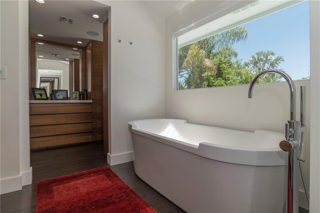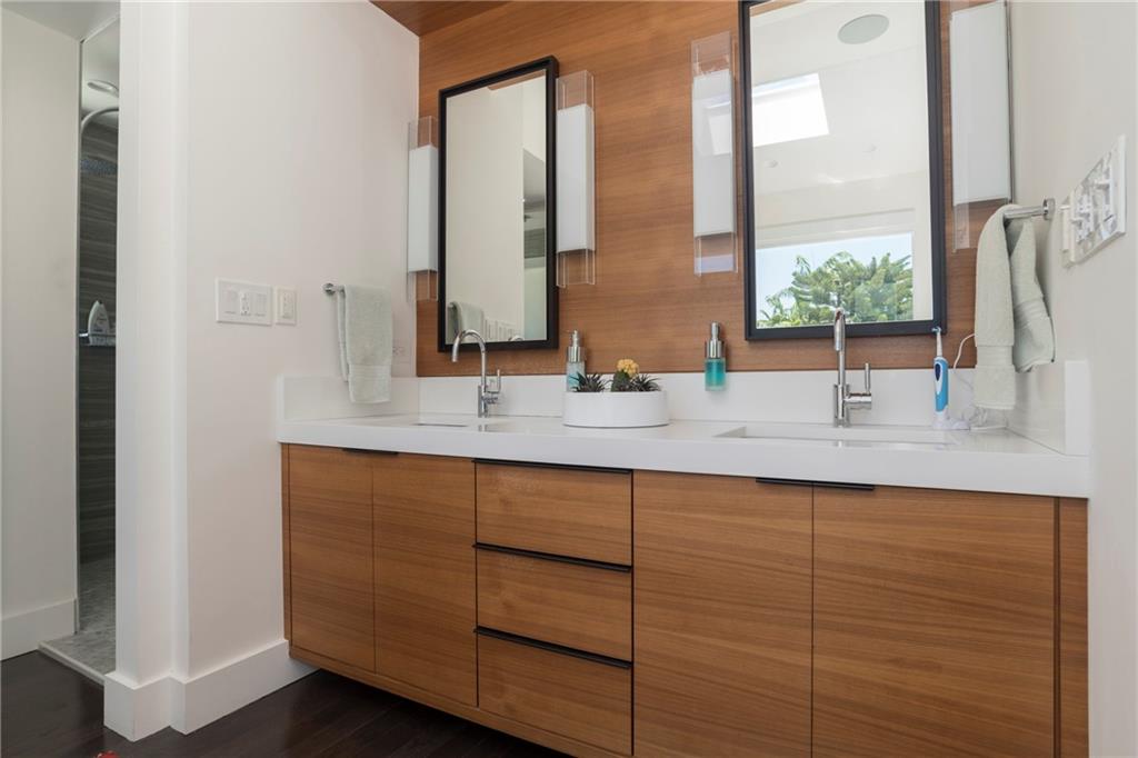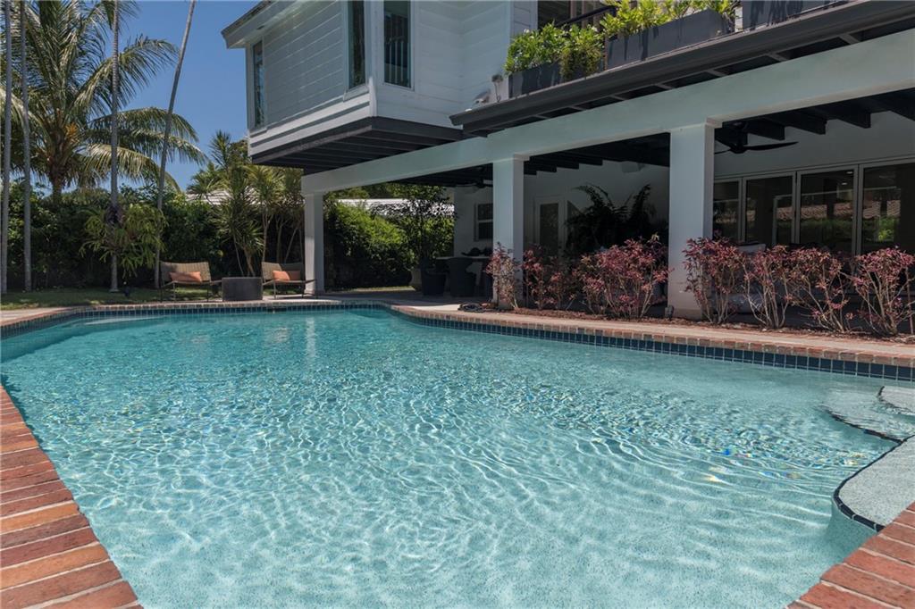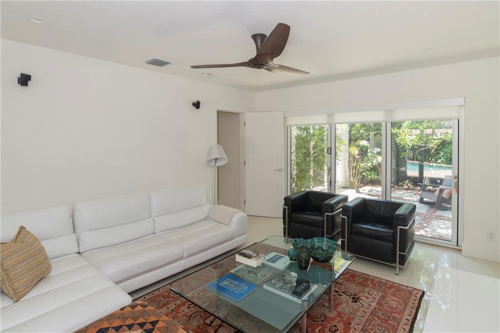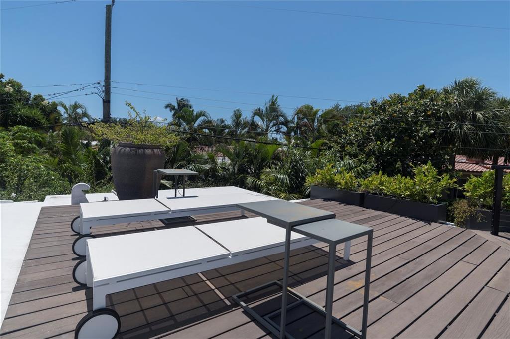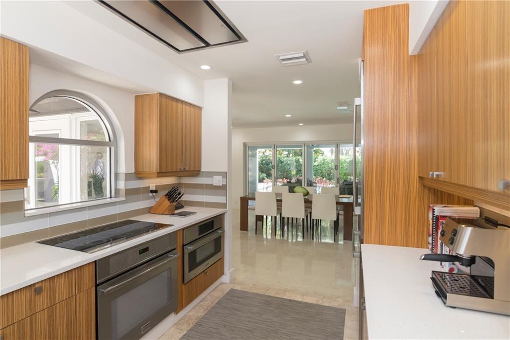 Mid Century Modern turned Sophisticated Contemporary with exquisite finishes and style + the most up to date technology. Beautiful modern kitchen with wood cabinetry, top of the line stainless appliances including induction cooking, quartz counters. Large indoor and outdoor entertaining areas, pool, plus dramatic roof top terrace and private guest patio. Serving Butler's Pantry to the outside. Twin a/c systems, walls of unique retractable hurricane doors for the ease of entertaining. Expansive master with sitting area, projection TV with retractable screen. electric blinds. Uniquely designed master closet systems and bath including European heated toilet seat. LED recessed lighting throughout.