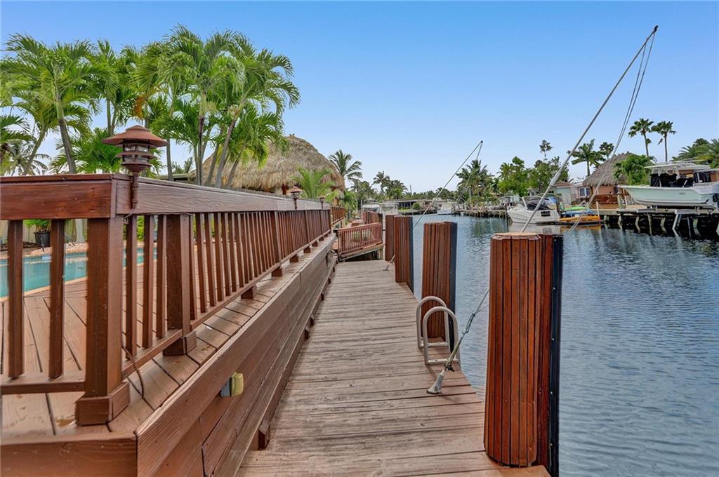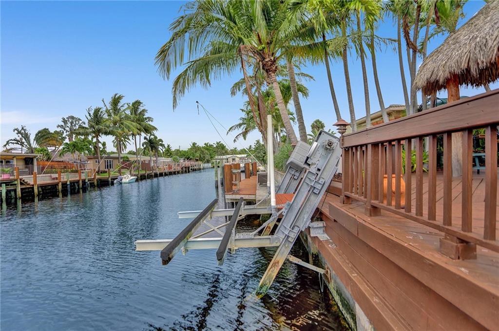BEAUTIFUL, UPDATED HOME LOCATED IN GREAT NEIGHBORHOOD WITH MANY SPECIAL DETAILS. 2 BEDROOMS, 2 BATH HOME WITH SPACIOUS, OPEN LIVING SPACE, WITH SPACIOUS DEN/OFFICE AREA. IMPACT WINDOWS AND DOORS THROUGHOUT, TILE FLOORING, BRAND NEW ELECTRICAL PANEL, KITCHEN WITH STAINLESS STEEL APPLIANCES AND VIKING GAS STOVE, LARGE POOL AREA WITH TIKI HUT, APPROX 60 FT DOCK WITH BOAT LIFT THAT WILL HOLD APPROXIMAETLY A 10,000 LB BOAT, SPRINKLER SYSTEMS, 1 FIXED BRIDGE ON FEDERAL HWY. CLOSE TO SHOPPING, RESTAURANTS, GOLFING, AND MINUTES FROM BEACH.