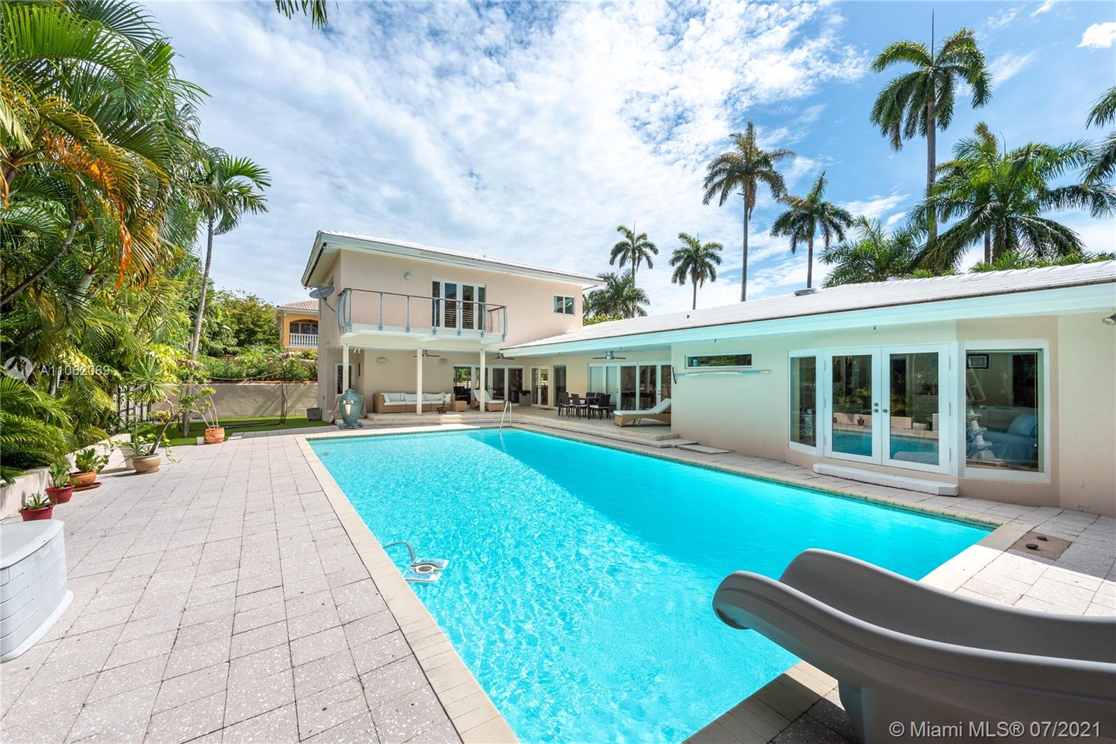 Beautiful mid-century modern home located on Miami Beach’s guard-gated and immaculately manicured La Gorce Island! Circular driveway leads you to an enclosed limestone courtyard with a putting green before entering the home. Inside, open floor plan with huge living areas and wall to wall impact windows overlook the lush backyard. Centrally sited oversized living room, family room with open kitchen, master suite on the 2nd floor featuring wood floors, private terrace, walk-in closets, and luxe bath. Step outside to find yourself surrounded with swaying palm trees, covered wraparound porch surrounding the heated pool, and several play areas. Situated on a huge 13,125-SF lot, this 4 beds 5 bath is equipped with a 1 car garage.