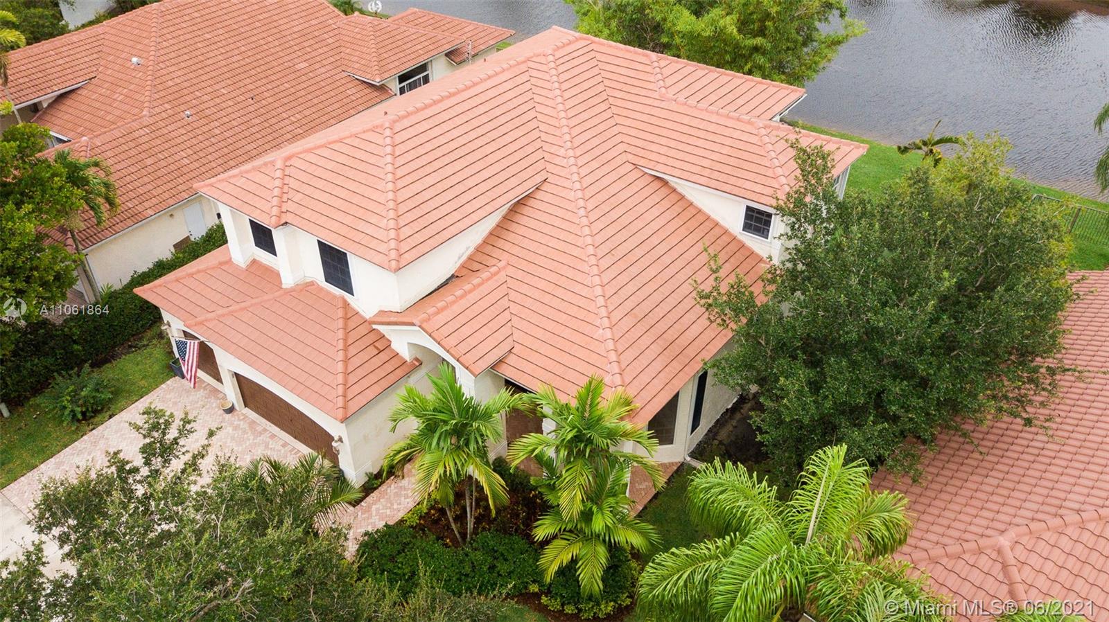 This lovely 5 bedroom, 4 bathroom home features a pool with waterfront view in a quiet Weston Hills neighborhood. Walk into the main floor and you are welcomed by its spectacular vaulted ceilings as well as marble floors throughout and with natural light that pours into the entire first floor. This floor offers large gathering areas like the family room and professional-grade kitchen from where you can view the breathtaking sunsets over the lake, a formal dining room, guest suite alongside a full bathroom, laundry room, and a 3 car garage. Roof, hurricane impact garage door and front doors are newly installed. Upstairs features a grand primary suite with balcony, 1 ensuite bedroom, and 2 additional bedrooms. This home won’t last long with all these great features!