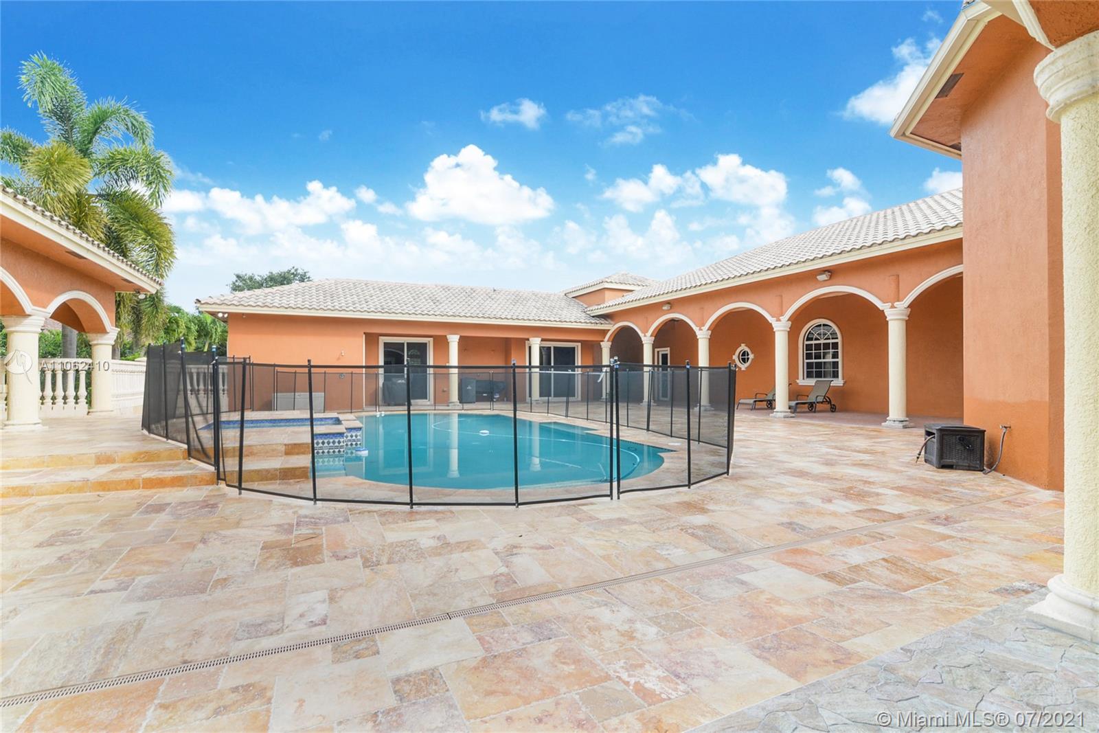 EXQUISITE CUSTOM COURTYARD ESTATE HOME WITH PRIVATE GUEST HOUSE ON AN EXCLUSIVE 1 1/4 ACRE LOT, ON A CUL-DE-SAC, WITH LOTS OF PRIVACY. THE RESIDENCE BOASTS 6 BEDROOMS PLUS MEDIA/OFFICE ROOM AND 6.5 BATHROOMS, GRAND ENTRANCE WITH DOUBLE HEIGHT CUSTOM IRON FRONT DOORS, FORMAL LIVING AREA WITH FIREPLACE FILLED WITH LOTS OF NATURAL LIGHTING. YOU WILL FIND MARBLE FLOORS THROUGH OUT, A BEAUTIFUL CHEF KITCHEN WITH TOP OF THE LINE WOLF AND SUBZERO APPLIANCES AND GRANITE COUNTERTOPS THAT OVERLOOKS A LARGE LIVING ROOM. THE MASTER BEDROOM IS OVERSIZED, WITH LOTS OF WINDOWS LOOKING INTO THE COURTYOUARD, AND THE POOL AREA. THERE ARE TWO CUSTOM HIS/HER WALK IN CLOSETS AND A LUXURIOUS MARBLE MASTER BATHROOM WITH TWO WALK INS FOR THE SHOWER AND A LARGE CUSTOM TUB. LARGE AND IMPRESSIVE FORMAL DINING