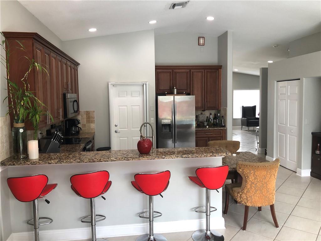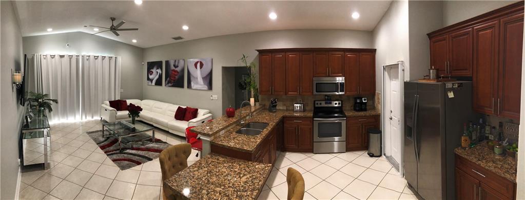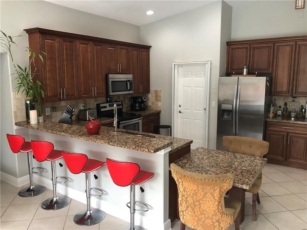 Modern and Fully Furnished 3 bedroom 2 bathroom home located in the tranquil Village at Harmony Lakes. Split floor plan, magnificent kitchen, bright dining room, elegant living room, spacious family room, tiled throughout, waterproof laminate in bedrooms, brand new HVAC system, huge gazebo overlooking a beautifully lit private pool. This home is ready for move in on day 1! Don't wait to schedule your appointment today!