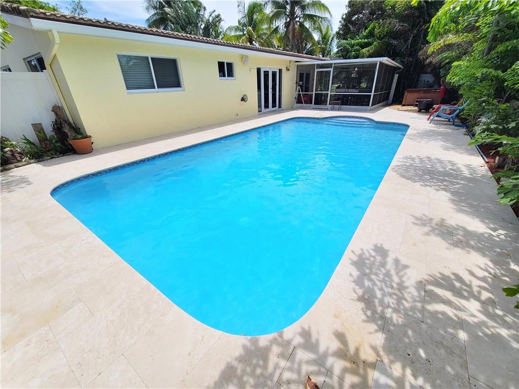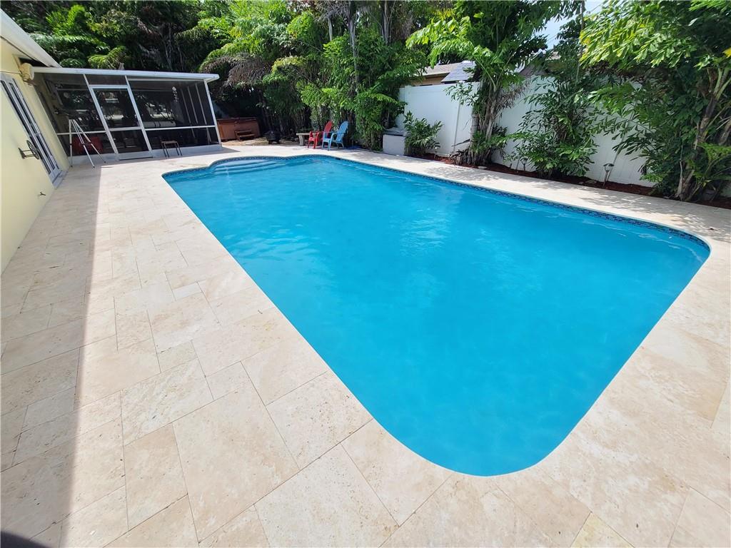 Beautifully Redone Home in sought after Riverland Village. This 2 Bed/2 Bath home has a Gorgeous Pool and Patio that were just redone ($12,000) with new Diamond Brite, New Travertine Tile and Decking. Enjoy a relaxing soak in the Hot tub before jumping in the pool ! Impact windows and Doors (except for front door), Newly sodded Front Lawn with sprinkler system, freshly painted inside and outside, AC was replaced in 2008, the Electrical Panel was upgraded in 2008, Kitchen was remodeled in 2008. Bathrooms were recently renovated and home has tile floor throughout. Large driveway with plenty of parking. This home is move in ready !! Just bring your toothbrush and Bathing Suit !